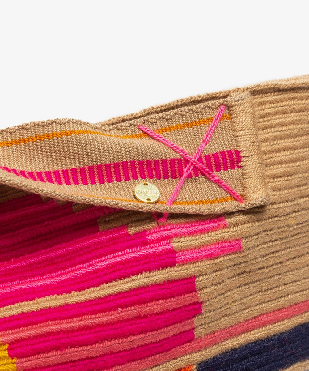 En GUANABANA siempre tenemos nuestros ojos y alma abiertos a las necesidades de las mujeres. Alejandra es el nombre de una de las profesionales de nuestro equipo y ella nos pidió un bolso que fuera cómodo pero muy chic para sus frecuentes reuniones y viajes. Con este bolso honramos su vida y su creatividad. ALEJANDRA representa una revolución en la comunidad de tejedoras Wayuu quienes aceptaron el reto de cambiar la forma de la base de un bolso tradicional. El resultado es único y sensacional. Este bolso tiene dos asas cortas, bajo pedido se puede añadir una versión larga. Todos los bolsos llevan nuestro característico sello en bronce con el leitmotiv de GUANABANA: BE POSITIVE.