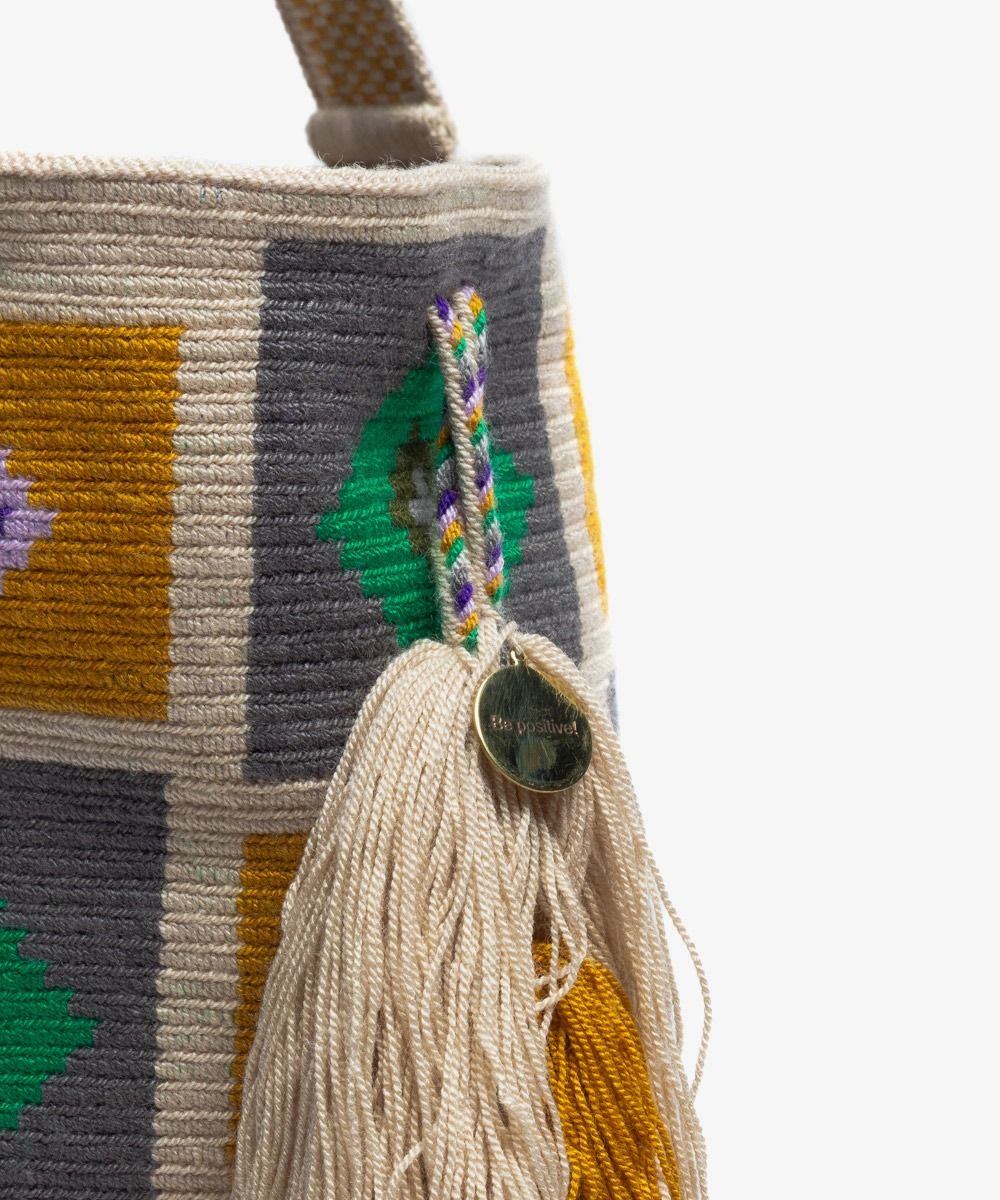 GUANABANA reinventa su clásico bolso cruzado L acortando su asa y añadiendo dos pompones irresistibles a sus lados. Este modelo, consistente con el original, tiene un punto delicado y muy resistente que permite a las artesanas Wayúu en Colombia tejer diseños y patrones con excepcional calidad. Revisa sus bases, no hay dos iguales! Todos los bolsos llevan nuestro característico sello en bronce con el leitmotiv de GUANABANA: BE POSITIVE.