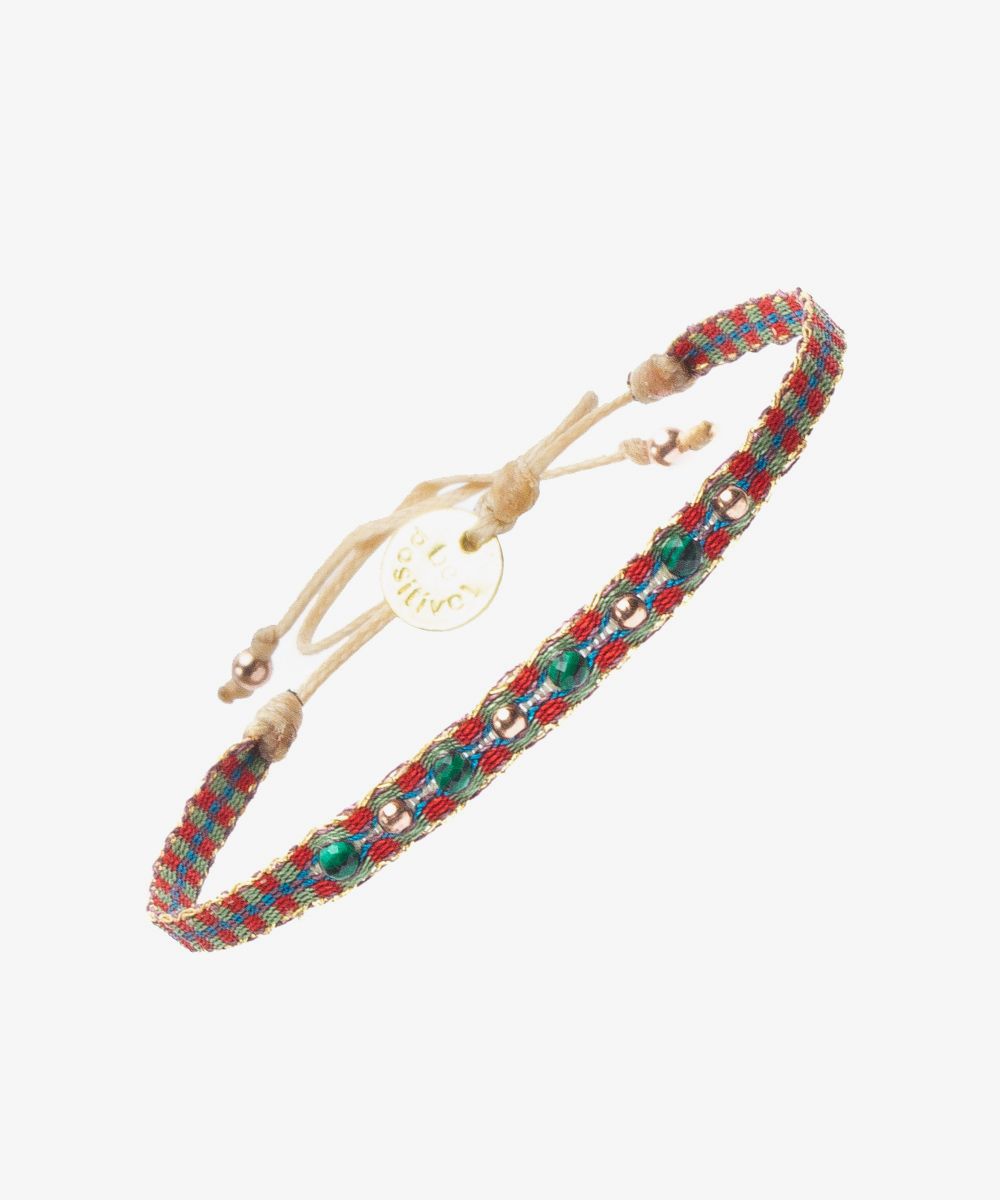 Guanábana da un giro a su tradicional ARGANTINA y la convierte en un accesorio brillante y colorido, con cuentas de piedras semipreciosas que aportan sofisticación a la pulsera. La argantina ALAMEIN está tejida a mano por artesanas usando un telar manual y acabada con un cierre ajustable y una medallita en bronce con nuestro mantra para que no lo olvides: BE POSITIVE.