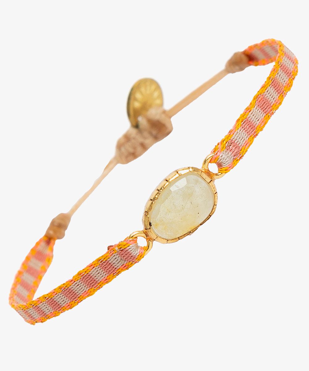 Un accesorio sofisticado y atemporal: así es la argantina BRISTOL, una pulsera diseñada en exclusiva por Guanábana en su constante búsqueda por innovar. El diseño de esta pulsera combina el valor de la artesanía y las prácticas tradicionales con reminiscencias del diseño de moda europeo y las tendencias más actuales. Está tejida completamente a mano por artesanas en un telar manual. Una pieza de plata bañada en oro con una piedra semipreciosa le aporta un acabado elegante y de alta calidad que hará de esta pulsera el accesorio ideal para cualquier ocasión. Tiene un cierre ajustable para la muñeca y, para que no lo olvides, una medallita en bronce con nuestro mantra: BE POSITIVE.Nuestro consejo: escoge una gama de color y combínala con un set de argantinas en los mismos tonos.