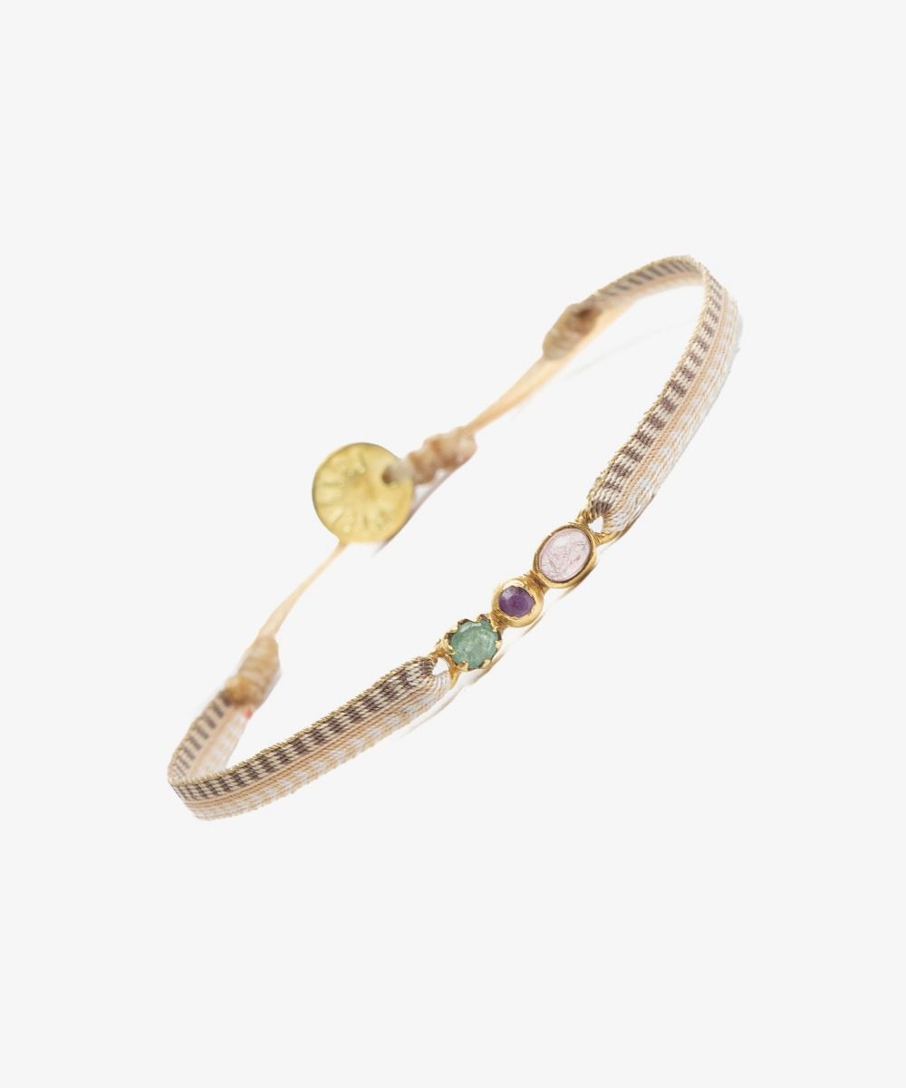 Nuestras tradicionales Argantinas se transforman en piezas únicas de joyería. La pulsera Westminster, una creación original de Guanabana Handmade, combina los coloridos motivos de inspiración étnica con un toque de sofisticación y lujo. Fabricada a mano por nuestros artesanos, cada pulsera está adornada con una pieza de plata dorada engastada con 3 piedras semipreciosas, y tiene una abertura ajustable a la muñeca. Por último, la pulsera está decorada con un medallón dorado en el que está inscrito nuestro mantra: BE POSITIVE.