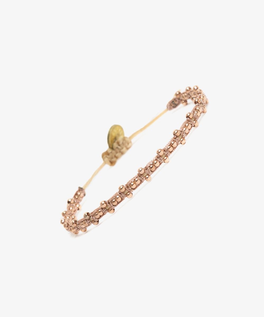 La colección Calendula transforma el diseño original de nuestras pulseras añadiendo cuentas bañadas en oro rosa, aportando un toque de elegancia a sus coloridos patrones. Creación exclusiva de Guanábana, diseñada en Madrid, esta pulsera está tejida a mano por artesanos colombianos en un telar siguiendo técnicas tradicionales. La abertura de la pulsera se ajusta para adaptarse a tu muñeca y está adornada con un medallón en el que está inscrito nuestro mantra: ¡Sé positivo!