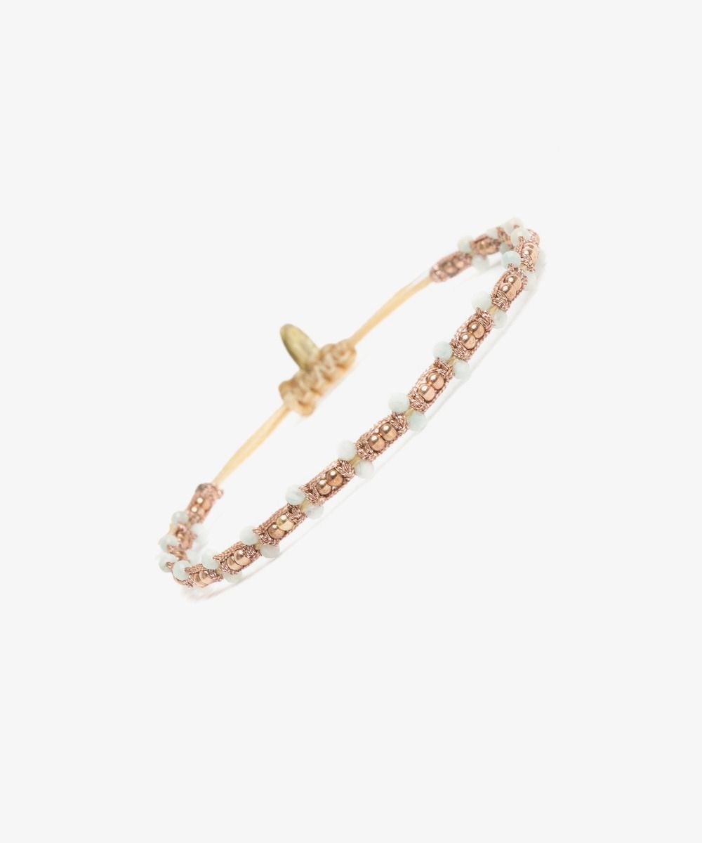 La colección Girasol transforma el diseño original de nuestras pulseras añadiendo cuentas bañadas en oro rosa, aportando un toque de elegancia a sus coloridos patrones. Creación exclusiva de Guanábana, diseñada en Madrid, esta pulsera está tejida a mano por artesanos colombianos en un telar siguiendo técnicas tradicionales. La abertura de la pulsera se ajusta para adaptarse a tu muñeca y está adornada con un medallón en el que está inscrito nuestro mantra: ¡Sé positivo!