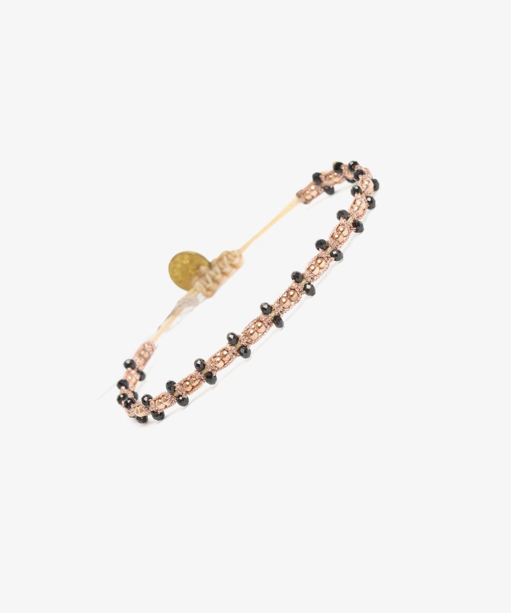 La colección Girasol transforma el diseño original de nuestras pulseras añadiendo cuentas bañadas en oro rosa, aportando un toque de elegancia a sus coloridos patrones. Creación exclusiva de Guanábana, diseñada en Madrid, esta pulsera está tejida a mano por artesanos colombianos en un telar siguiendo técnicas tradicionales. La abertura de la pulsera se ajusta para adaptarse a tu muñeca y está adornada con un medallón en el que está inscrito nuestro mantra: ¡Sé positivo!
