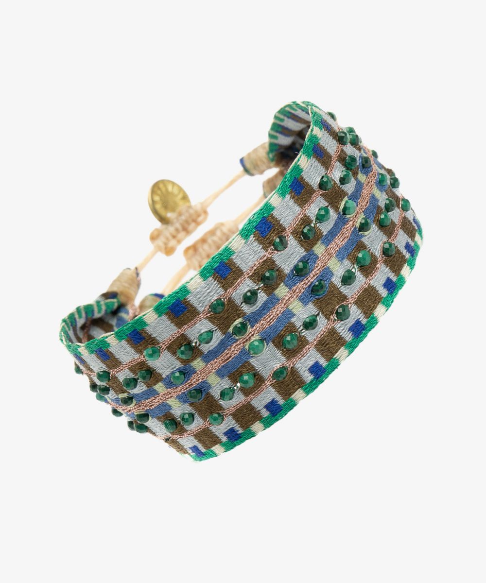 Guanábana da un giro a su tradicional ARGANTINA y la convierte en un accesorio brillante y colorido, con cuentas de piedras semipreciosas que aportan sofisticación a la pulsera. La argantina 2CMX está tejida a mano por artesanas usando un telar manual y acabada con un cierre ajustable y una medallita en bronce con nuestro mantra para que no lo olvides: BE POSITIVE.