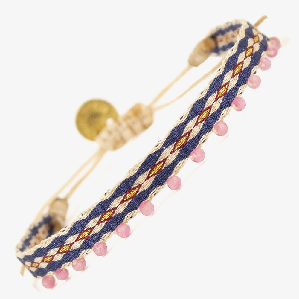 Guanábana da un giro a su tradicional ARGANTINA y la convierte en un accesorio brillante y colorido, con cuentas de piedras semipreciosas que aportan sofisticación a la pulsera. La argantina ALAMEIN está tejida a mano por artesanas usando un telar manual y acabada con un cierre ajustable y una medallita en bronce con nuestro mantra para que no lo olvides: BE POSITIVE.