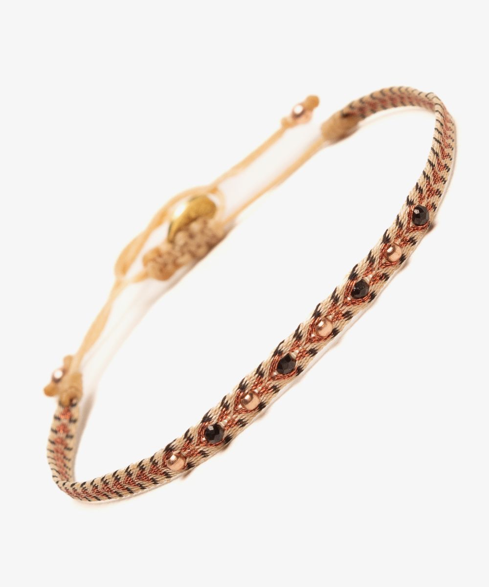 Guanábana da un giro a su tradicional ARGANTINA y la convierte en un accesorio brillante y colorido, con cuentas de piedras semipreciosas que aportan sofisticación a la pulsera. La argantina ALAMEIN está tejida a mano por artesanas usando un telar manual y acabada con un cierre ajustable y una medallita en bronce con nuestro mantra para que no lo olvides: BE POSITIVE.