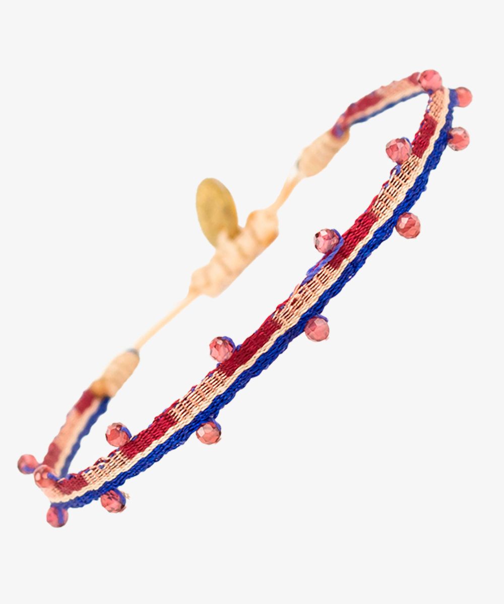 Guanábana da un giro a su tradicional ARGANTINA y la convierte en un accesorio brillante y colorido, con cuentas de piedras semipreciosas que aportan sofisticación a la pulsera. La argantina ALAMEIN está tejida a mano por artesanas usando un telar manual y acabada con un cierre ajustable y una medallita en bronce con nuestro mantra para que no lo olvides: BE POSITIVE.