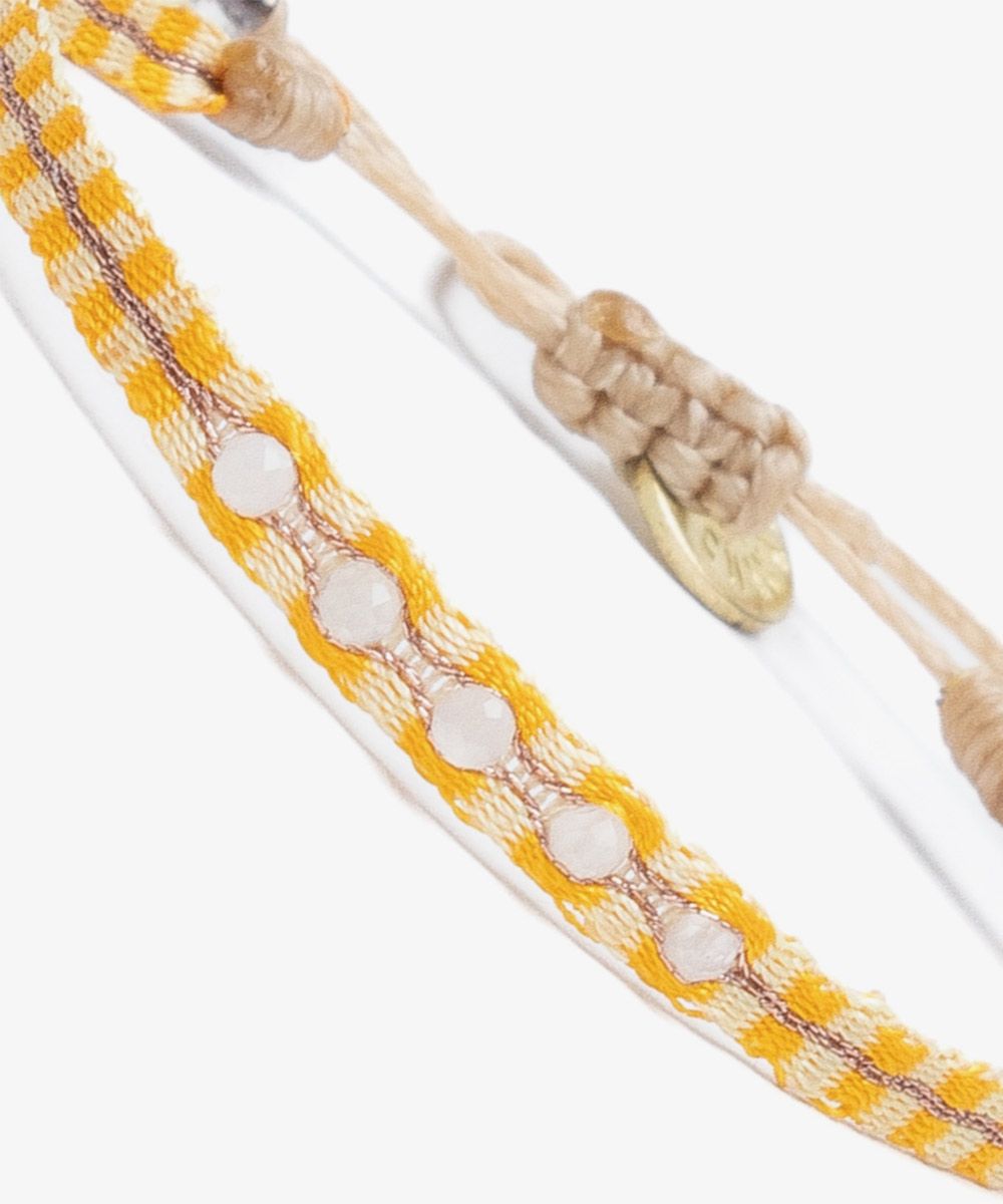 Guanábana da un giro a su tradicional ARGANTINA y la convierte en un accesorio brillante y colorido, con cuentas de piedras semipreciosas que aportan sofisticación a la pulsera. La argantina ALAMEIN está tejida a mano por artesanas usando un telar manual y acabada con un cierre ajustable y una medallita en bronce con nuestro mantra para que no lo olvides: BE POSITIVE.