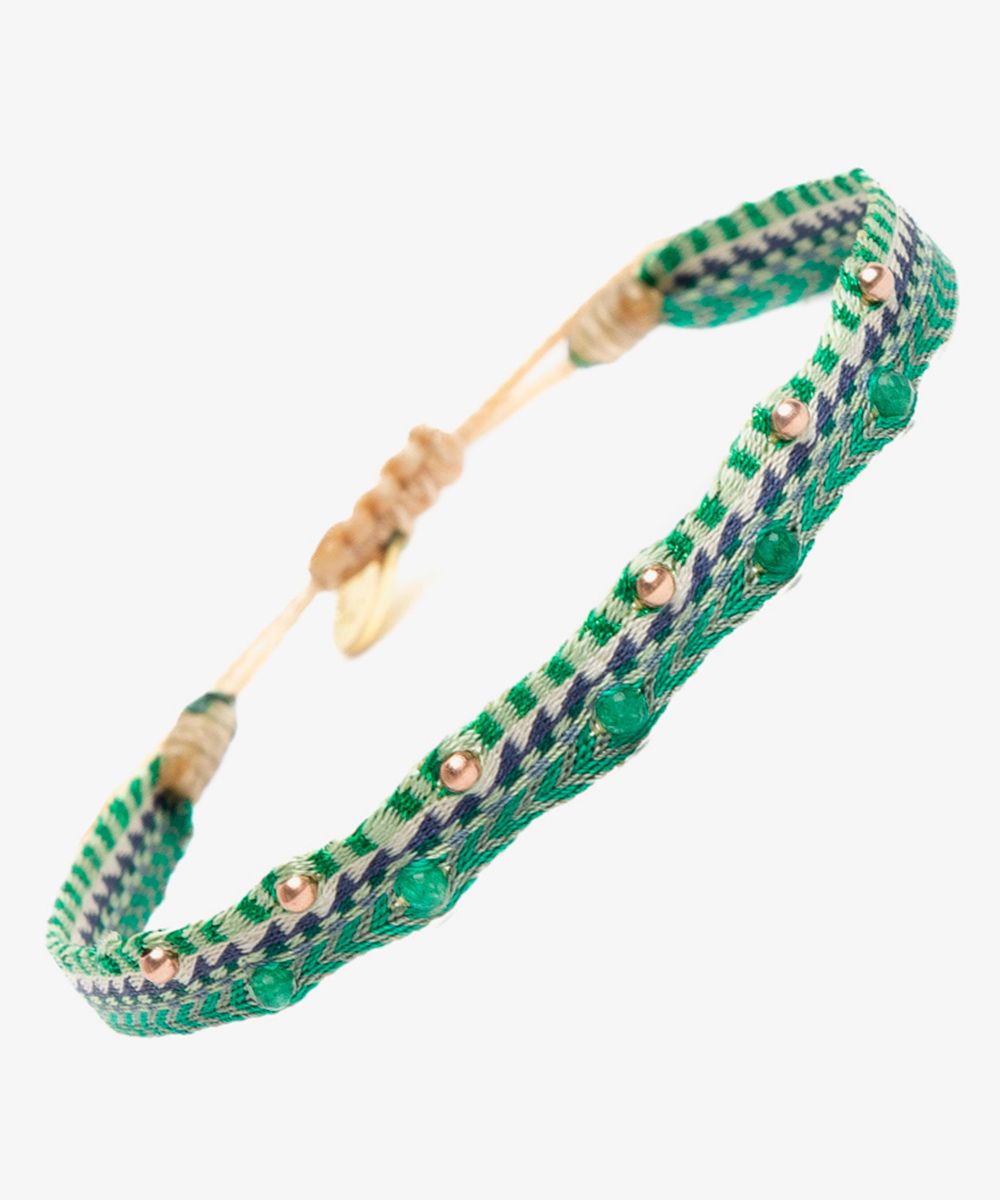 Guanábana da un giro a su tradicional ARGANTINA y la convierte en un accesorio brillante y colorido, con cuentas de piedras semipreciosas que aportan sofisticación a la pulsera. La argantina ALAMEIN está tejida a mano por artesanas usando un telar manual y acabada con un cierre ajustable y una medallita en bronce con nuestro mantra para que no lo olvides: BE POSITIVE.