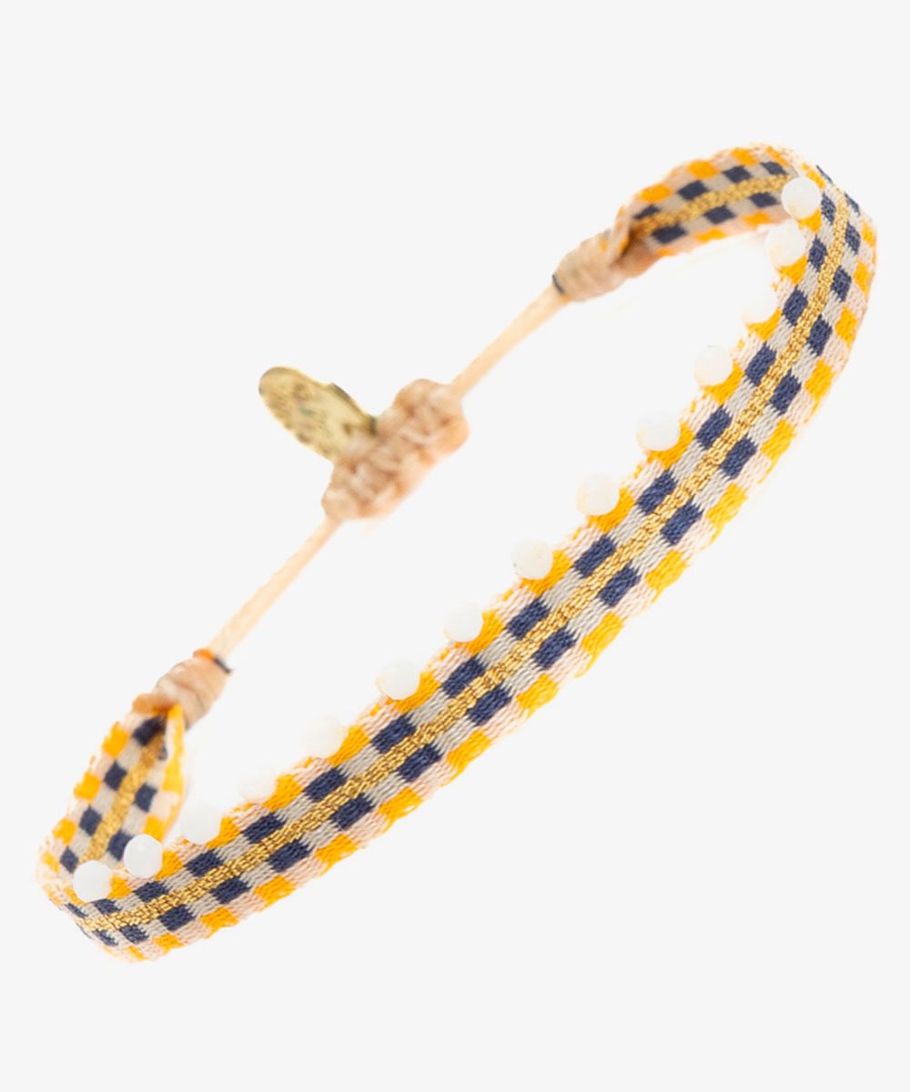 Guanábana da un giro a su tradicional ARGANTINA y la convierte en un accesorio brillante y colorido, con cuentas de piedras semipreciosas que aportan sofisticación a la pulsera. La argantina ALAMEIN está tejida a mano por artesanas usando un telar manual y acabada con un cierre ajustable y una medallita en bronce con nuestro mantra para que no lo olvides: BE POSITIVE.