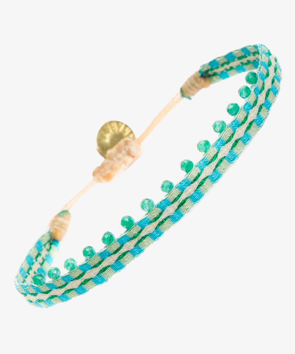 Guanábana da un giro a su tradicional ARGANTINA y la convierte en un accesorio brillante y colorido, con cuentas de piedras semipreciosas que aportan sofisticación a la pulsera. La argantina ALAMEIN está tejida a mano por artesanas usando un telar manual y acabada con un cierre ajustable y una medallita en bronce con nuestro mantra para que no lo olvides: BE POSITIVE.