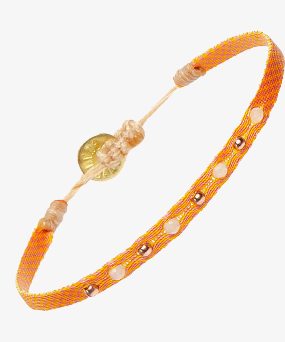 Guanábana da un giro a su tradicional ARGANTINA y la convierte en un accesorio brillante y colorido, con cuentas de piedras semipreciosas que aportan sofisticación a la pulsera. La argantina ALAMEIN está tejida a mano por artesanas usando un telar manual y acabada con un cierre ajustable y una medallita en bronce con nuestro mantra para que no lo olvides: BE POSITIVE.