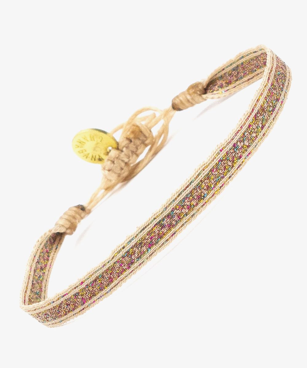 La argantina 120 es el accesorio emblemático de Guanabana Handmade. Una creación original concebida en Madrid, esta pulsera está hecha a mano por nuestros artesanos de Colombia a partir de 120 hilos acrílicos resistentes al agua. Los motivos coloridos de inspiración étnica, embellecerán tu look diario aportándole brillo y color. La abertura de la pulsera se ajusta a la muñeca y está adornada con una medalla dorada en lal que está grabado nuestro mantra: BE POSITIVE.