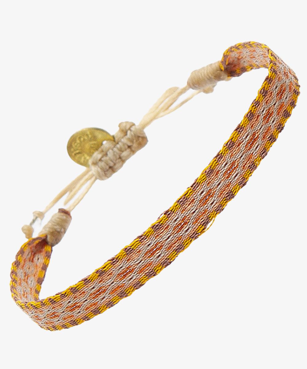 La argantina 120 es el accesorio emblemático de Guanabana Handmade. Una creación original concebida en Madrid, esta pulsera está hecha a mano por nuestros artesanos de Colombia a partir de 120 hilos acrílicos resistentes al agua. Los motivos coloridos de inspiración étnica, embellecerán tu look diario aportándole brillo y color. La abertura de la pulsera se ajusta a la muñeca y está adornada con una medalla dorada en lal que está grabado nuestro mantra: BE POSITIVE.