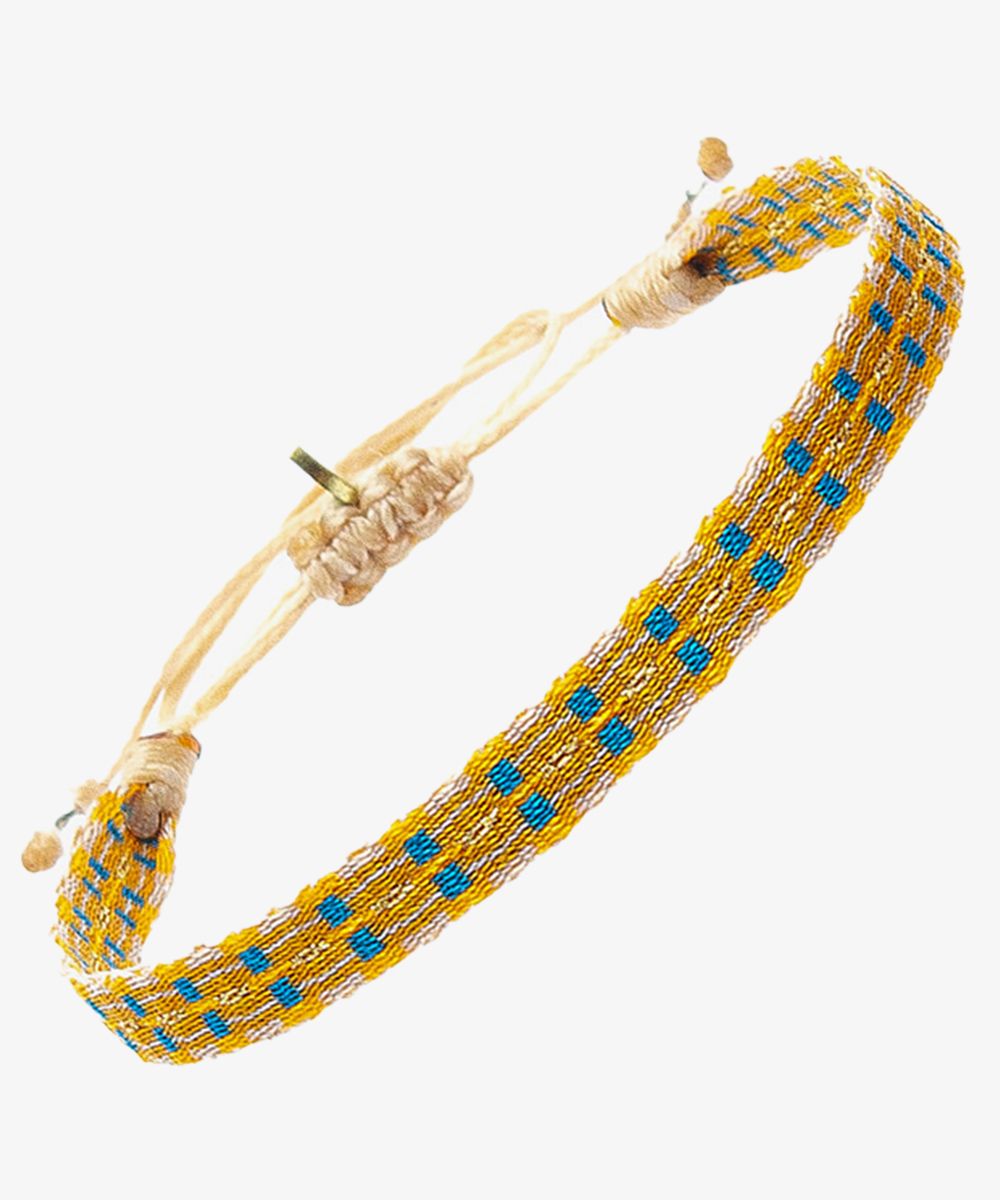 La argantina 120 es el accesorio emblemático de Guanabana Handmade. Una creación original concebida en Madrid, esta pulsera está hecha a mano por nuestros artesanos de Colombia a partir de 120 hilos acrílicos resistentes al agua. Los motivos coloridos de inspiración étnica, embellecerán tu look diario aportándole brillo y color. La abertura de la pulsera se ajusta a la muñeca y está adornada con una medalla dorada en lal que está grabado nuestro mantra: BE POSITIVE.