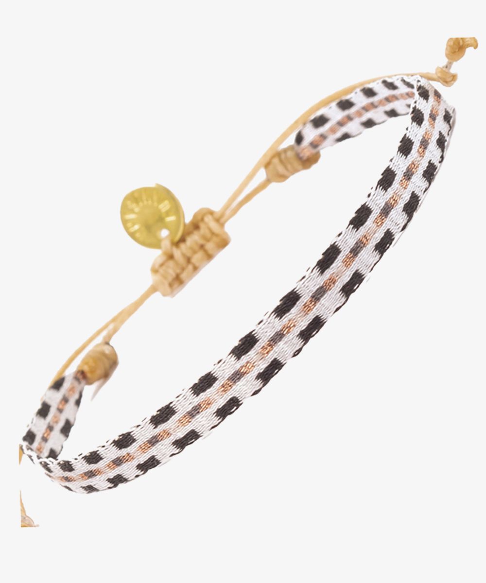 La argantina 120 es el accesorio emblemático de Guanabana Handmade. Una creación original concebida en Madrid, esta pulsera está hecha a mano por nuestros artesanos de Colombia a partir de 120 hilos acrílicos resistentes al agua. Los motivos coloridos de inspiración étnica, embellecerán tu look diario aportándole brillo y color. La abertura de la pulsera se ajusta a la muñeca y está adornada con una medalla dorada en lal que está grabado nuestro mantra: BE POSITIVE.