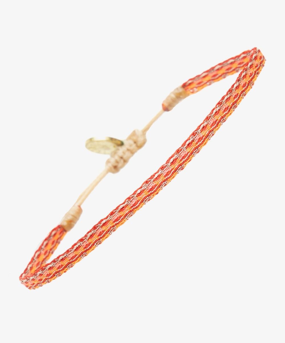 Esta pulsera está diseñada en nuestras oficinas centrales de Madrid. Tejida en un telar manual por artesanos en Colombia, utilizando técnicas antiguas. Cada pulsera está tejida con 40 hilos y cuenta con un cierre para ajustarla a la muñeca. Nuestro consejo: Puedes llevarla sola o mezclándola con varias más!