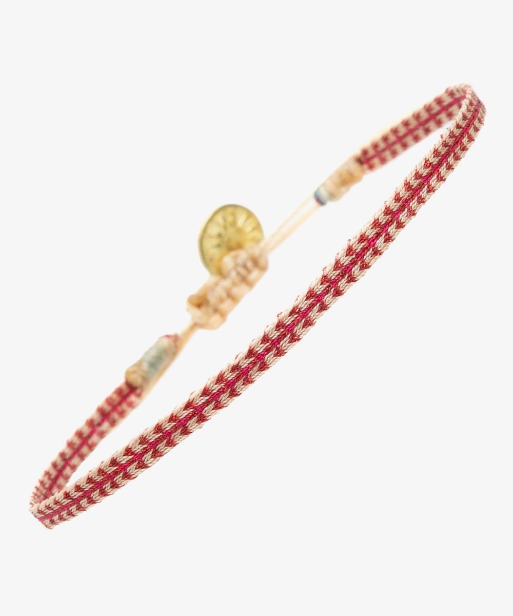 Esta pulsera está diseñada en nuestras oficinas centrales de Madrid. Tejida en un telar manual por artesanos en Colombia, utilizando técnicas antiguas. Cada pulsera está tejida con 40 hilos y cuenta con un cierre para ajustarla a la muñeca. Nuestro consejo: Puedes llevarla sola o mezclándola con varias más!