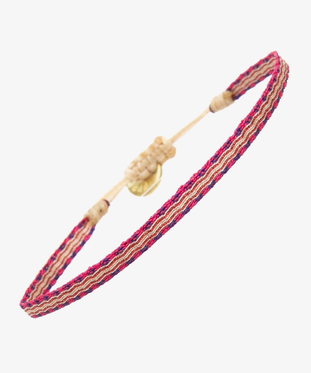 Esta pulsera está diseñada en nuestras oficinas centrales de Madrid. Tejida en un telar manual por artesanos en Colombia, utilizando técnicas antiguas. Cada pulsera está tejida con 40 hilos y cuenta con un cierre para ajustarla a la muñeca. Nuestro consejo: Puedes llevarla sola o mezclándola con varias más!