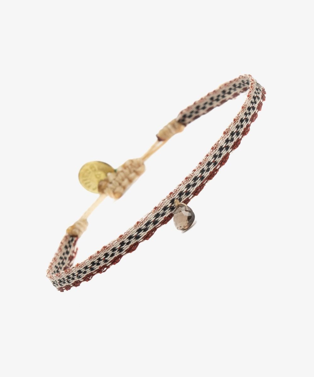 Esta pulsera está diseñada en nuestras oficinas centrales de Madrid. Tejida en un telar manual por artesanos en Colombia, utilizando técnicas antiguas. Cada pulsera está tejida con 40 hilos y cuenta con un cierre para ajustarla a la muñeca. Esta pulsera contiene una gota de piedra semi preciosa. Nuestro consejo: Puedes llevarla sola o mezclándola con varias más! Los detalles de nuestras pulseras hechas a mano, las hacen piezas únicas. Podrás reconocer si es una Pulsera Guanabana por sus diseños especiales y por una pequeña medalla que incluye nuestro logotipo y un mensaje "Be Positive" para que lo repitas como un Mantra.
