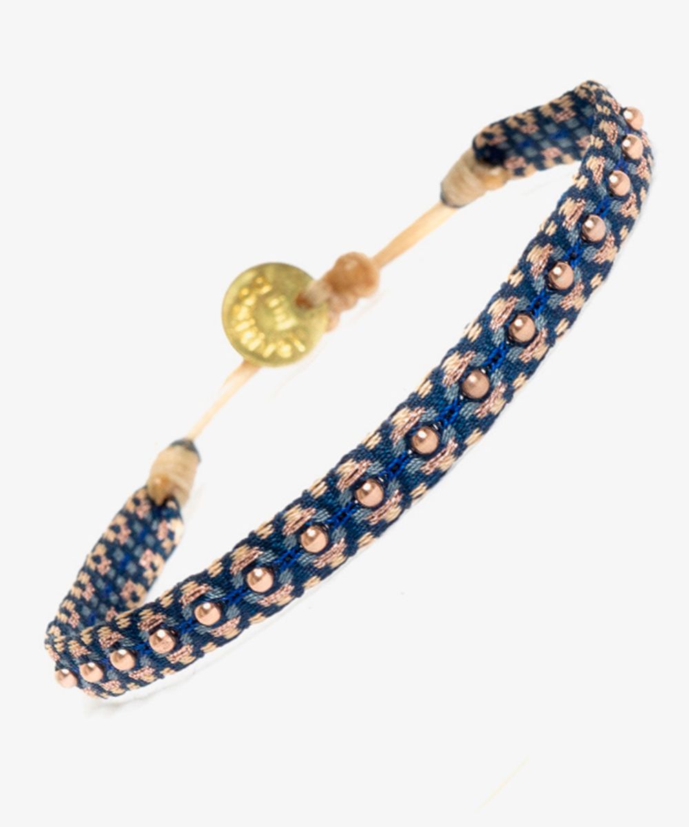 The Fontana collection transforms the original design of its traditional Argantinas by adding rose gold plated beads, giving a touch of elegance to their colourful patterns. Exclusive creation of Guanábana, designed in Madrid, this bracelet is hand woven by Colombian artisans on a handloom following traditional techniques. The opening of the bracelet adjusts to fit your wrist and is adorned with a medallion on which is inscribed our mantra: Be positive!