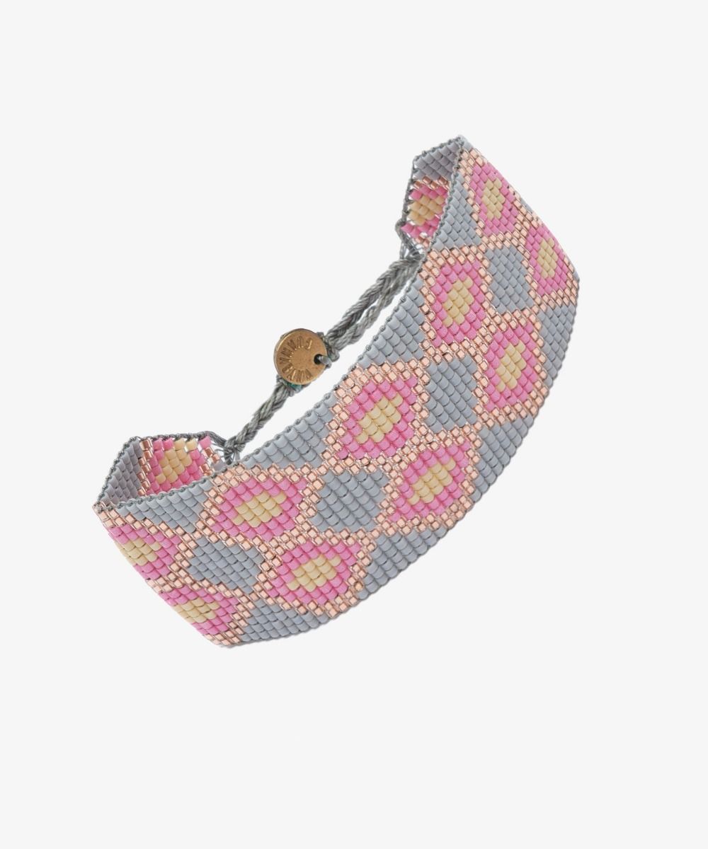 Esta colección de pulseras combina piezas de metal bañado y cuentas de Miyuki, donde el estilo clásico se mezcla con el toque divertido y arriesgado. Todas nuestras colecciones estan diseñadas en Madrid, y tejidas en un telar manual por artesanos en Colombia, utilizando técnicas ancestrales.
