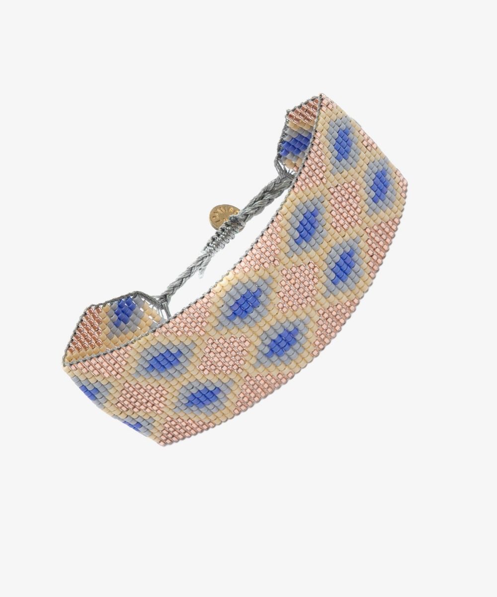 Esta colección de pulseras combina piezas de metal bañado y cuentas de Miyuki, donde el estilo clásico se mezcla con el toque divertido y arriesgado. Todas nuestras colecciones estan diseñadas en Madrid, y tejidas en un telar manual por artesanos en Colombia, utilizando técnicas ancestrales.