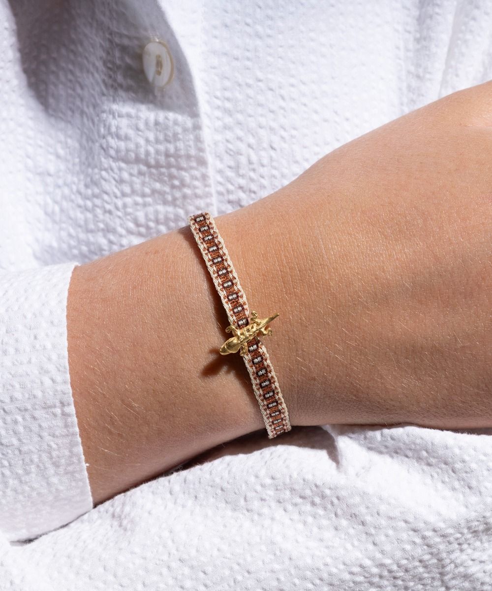 Este producto consta de pulsera + charm en plata 925 y enchapado en oro de 24 kilates. Para preservar su brillo, te recomendamos evitar usarla durante actividades como: - Deporte, actividades acuáticas (piscina, mar…) o actividades manuales (jardinería, limpieza, bricolaje…). - Llevarla en la ducha o baño. Te recomendamos evitar exponer tu joya a: - Productos corrosivos o químicos presentes en productos de limpieza o cosméticos (limpiadores, perfumes, cremas…). Para evitar dañar tu charm, es imprescindible no intentar ajustarlo o modificar su forma. La pátina puede desvanecerse con el tiempo, es un resultado normal del desgaste natural y dependerá del cuidado que le des a tu pieza. Puedes limpiar tu charm frotándolo con un paño suave.