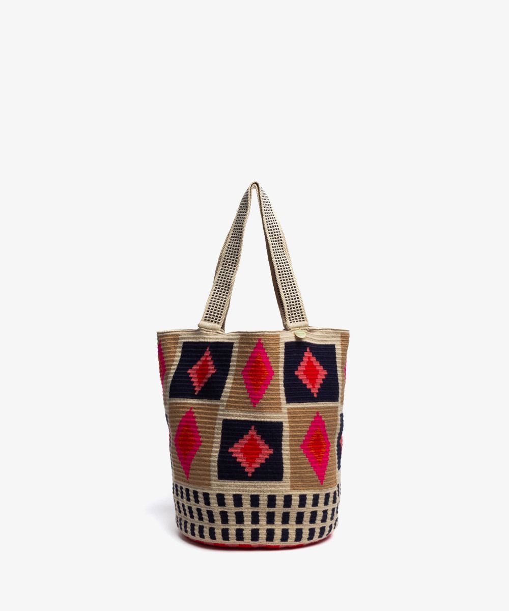 Gracias a las manos de cientos de mujeres Wayuu en Colombia y a los diseñadores de GUANÁBANA en Madrid, nuestro bolso clásico se presenta en una versión más pequeña. Tejido a mano por artesanas en Colombia, los colores y patrones de este bolso, y su asa larga, lo convierten en un imprescindible que puedes usar en cualquiera ocasión. Revisa su base y admira las diferencias que trae cada uno de ellos. Este bolso cierra con dos pompones tejidos y nuestro sello en bronce con el leitmotiv de GUANABANA: BE POSITIVE.