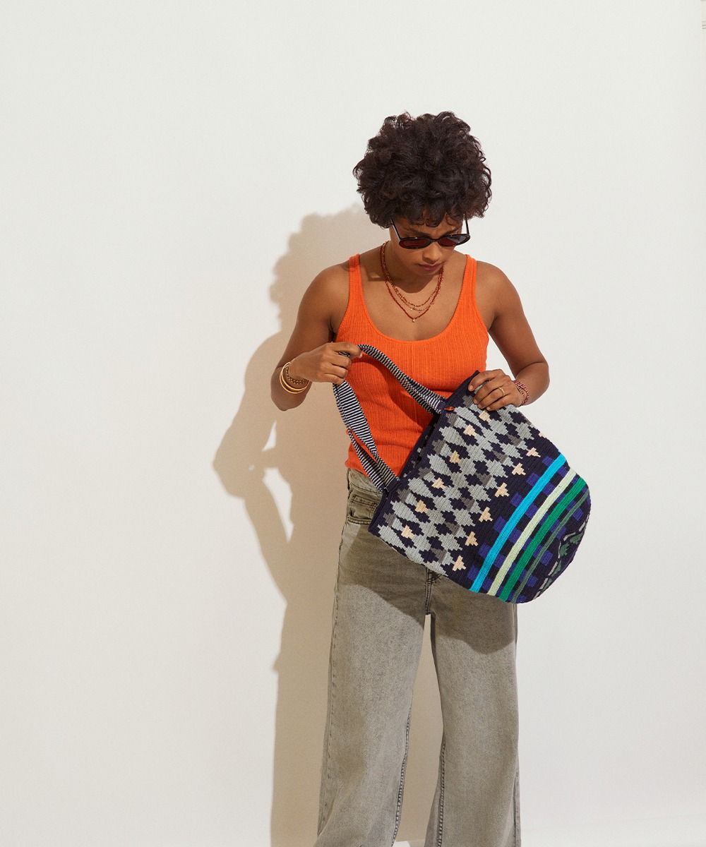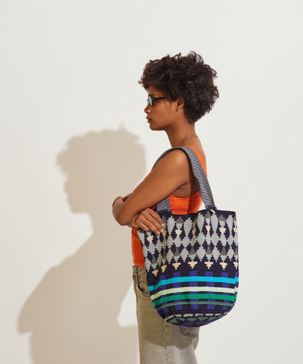 Gracias a las manos de cientos de mujeres Wayuu en Colombia y a los diseñadores de GUANÁBANA en Madrid, nuestro bolso clásico se presenta en una versión más pequeña. Tejido a mano por artesanas en Colombia, los colores y patrones de este bolso, y su asa larga, lo convierten en un imprescindible que puedes usar en cualquiera ocasión. Revisa su base y admira las diferencias que trae cada uno de ellos. Este bolso cierra con dos pompones tejidos y nuestro sello en bronce con el leitmotiv de GUANABANA: BE POSITIVE.