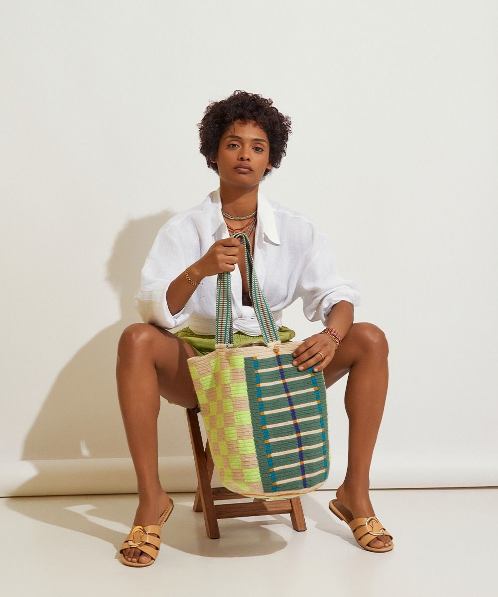 Gracias a las manos de cientos de mujeres Wayuu en Colombia y a los diseñadores de GUANÁBANA en Madrid, nuestro bolso clásico se presenta en una versión más pequeña. Tejido a mano por artesanas en Colombia, los colores y patrones de este bolso, y su asa larga, lo convierten en un imprescindible que puedes usar en cualquiera ocasión. Revisa su base y admira las diferencias que trae cada uno de ellos. Este bolso cierra con dos pompones tejidos y nuestro sello en bronce con el leitmotiv de GUANABANA: BE POSITIVE.