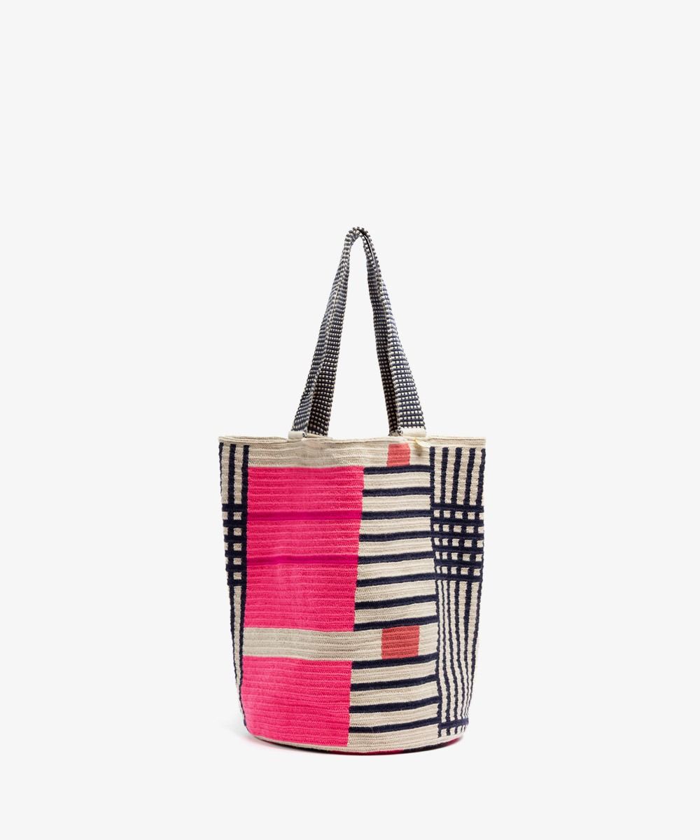 Gracias a las manos de cientos de mujeres Wayuu en Colombia y a los diseñadores de GUANÁBANA en Madrid, nuestro bolso clásico se presenta en una versión más pequeña. Tejido a mano por artesanas en Colombia, los colores y patrones de este bolso, y su asa larga, lo convierten en un imprescindible que puedes usar en cualquiera ocasión. Revisa su base y admira las diferencias que trae cada uno de ellos. Este bolso cierra con dos pompones tejidos y nuestro sello en bronce con el leitmotiv de GUANABANA: BE POSITIVE.