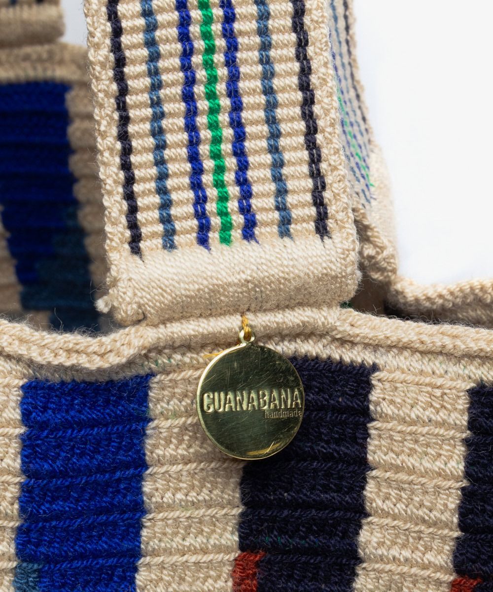 Gracias a las manos de cientos de mujeres Wayuu en Colombia y a los diseñadores de GUANÁBANA en Madrid, nuestro bolso clásico se presenta en una versión más pequeña. Tejido a mano por artesanas en Colombia, los colores y patrones de este bolso, y su asa larga, lo convierten en un imprescindible que puedes usar en cualquiera ocasión. Revisa su base y admira las diferencias que trae cada uno de ellos. Este bolso cierra con dos pompones tejidos y nuestro sello en bronce con el leitmotiv de GUANABANA: BE POSITIVE.