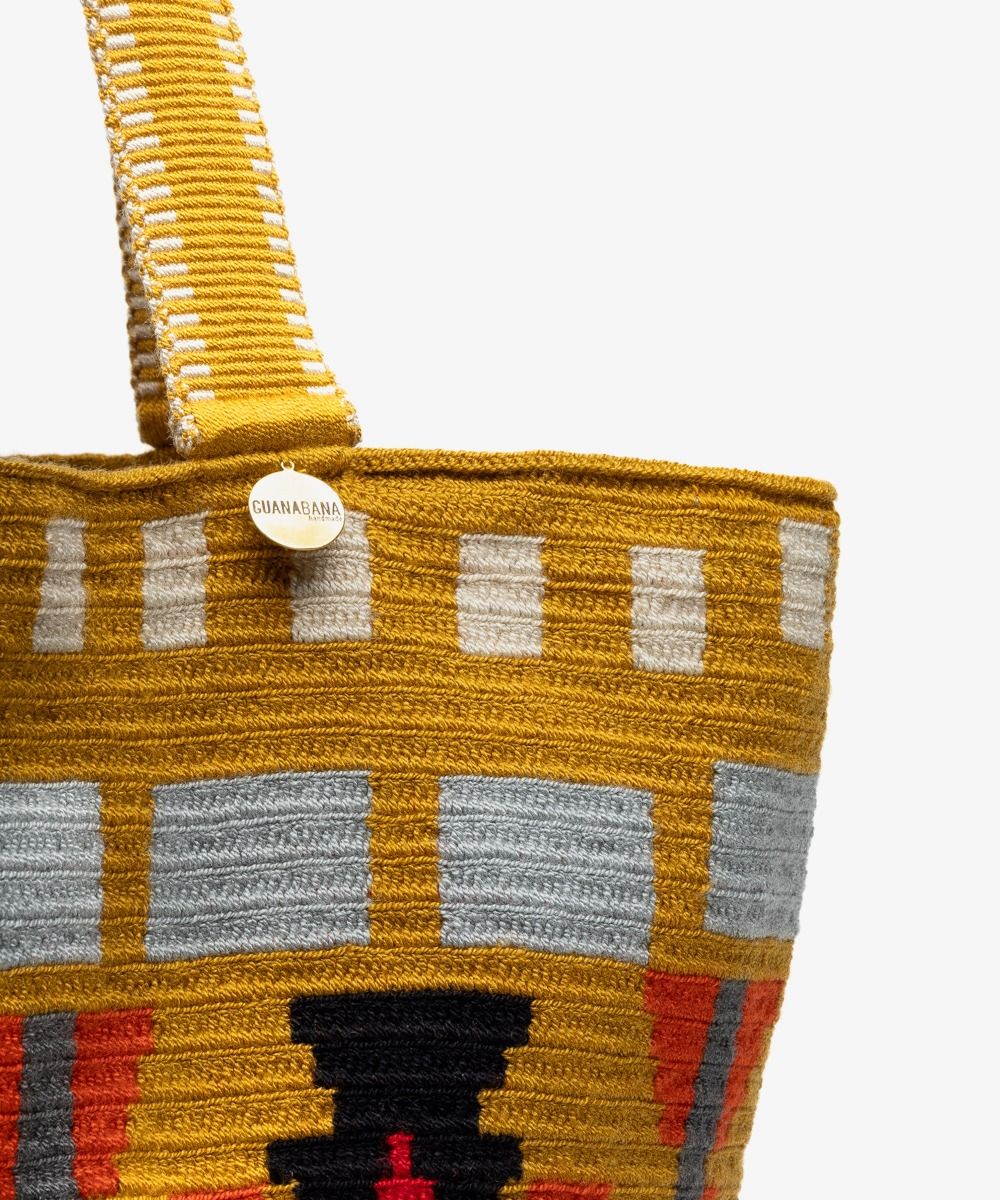 Gracias a las manos de cientos de mujeres Wayuu en Colombia y a los diseñadores de GUANÁBANA en Madrid, nuestro bolso clásico se presenta en una versión más pequeña. Tejido a mano por artesanas en Colombia, los colores y patrones de este bolso, y su asa larga, lo convierten en un imprescindible que puedes usar en cualquiera ocasión. Revisa su base y admira las diferencias que trae cada uno de ellos. Este bolso cierra con dos pompones tejidos y nuestro sello en bronce con el leitmotiv de GUANABANA: BE POSITIVE.