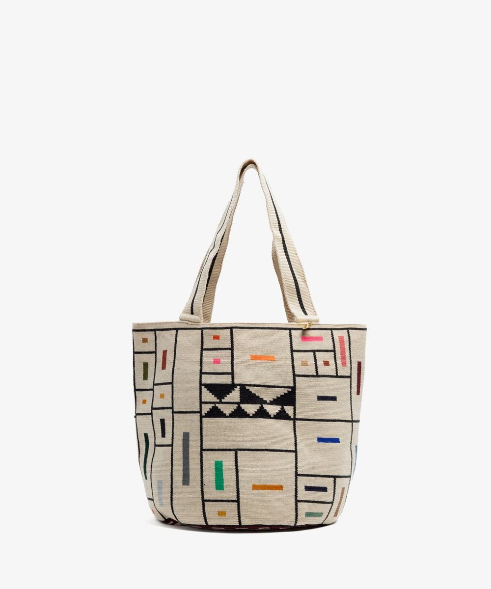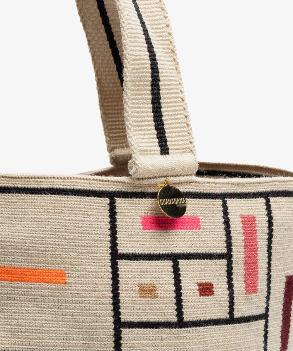 Gracias a las manos de cientos de mujeres Wayuu en Colombia y a los diseñadores de GUANÁBANA en Madrid, nuestro bolso clásico se presenta en una versión más pequeña. Tejido a mano por artesanas en Colombia, los colores y patrones de este bolso, y su asa larga, lo convierten en un imprescindible que puedes usar en cualquiera ocasión. Revisa su base y admira las diferencias que trae cada uno de ellos. Este bolso cierra con dos pompones tejidos y nuestro sello en bronce con el leitmotiv de GUANABANA: BE POSITIVE.