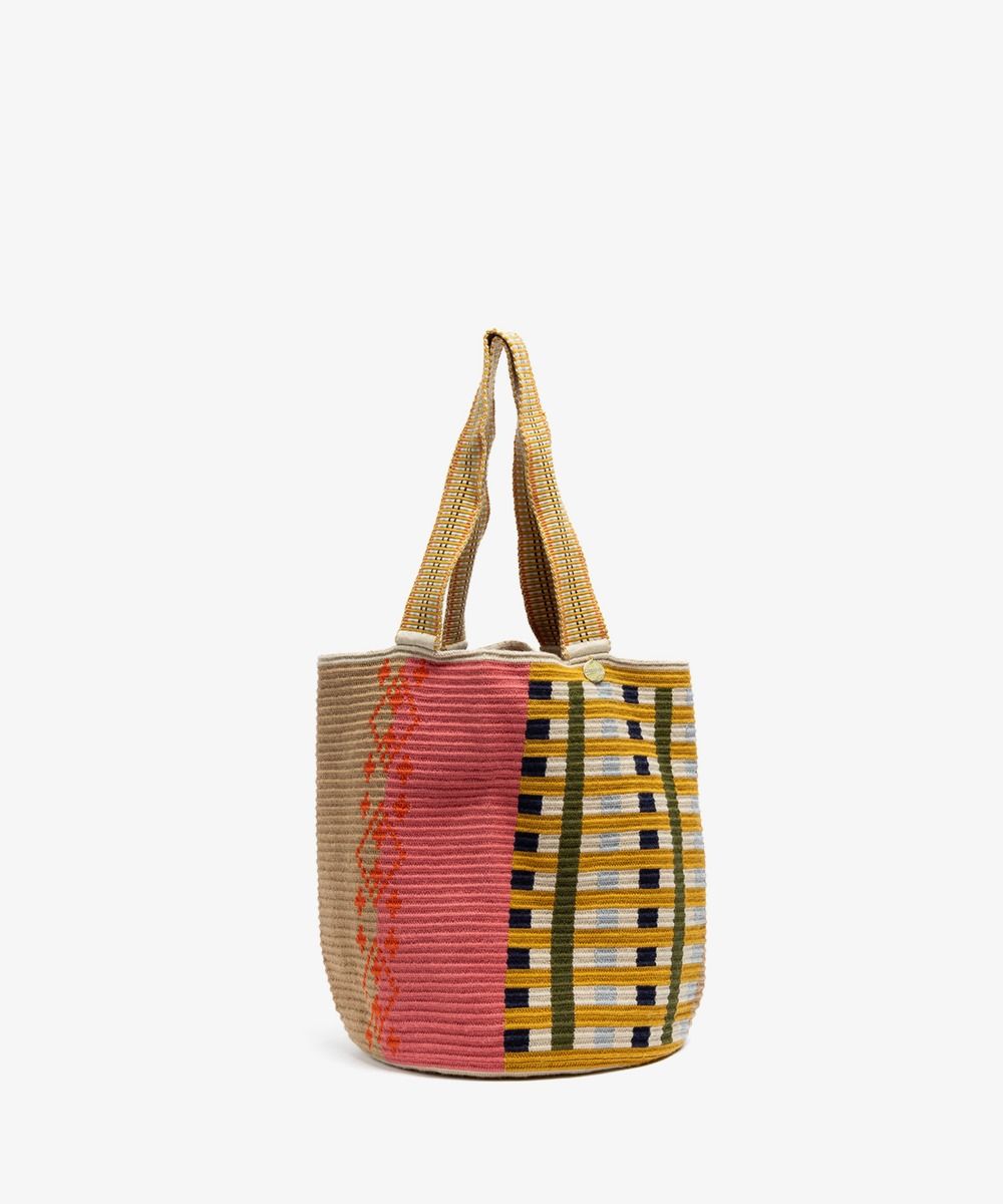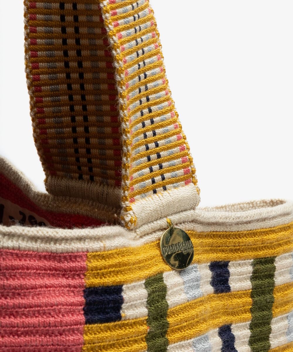 Gracias a las manos de cientos de mujeres Wayuu en Colombia y a los diseñadores de GUANÁBANA en Madrid, nuestro bolso clásico se presenta en una versión más pequeña. Tejido a mano por artesanas en Colombia, los colores y patrones de este bolso, y su asa larga, lo convierten en un imprescindible que puedes usar en cualquiera ocasión. Revisa su base y admira las diferencias que trae cada uno de ellos. Este bolso cierra con dos pompones tejidos y nuestro sello en bronce con el leitmotiv de GUANABANA: BE POSITIVE.