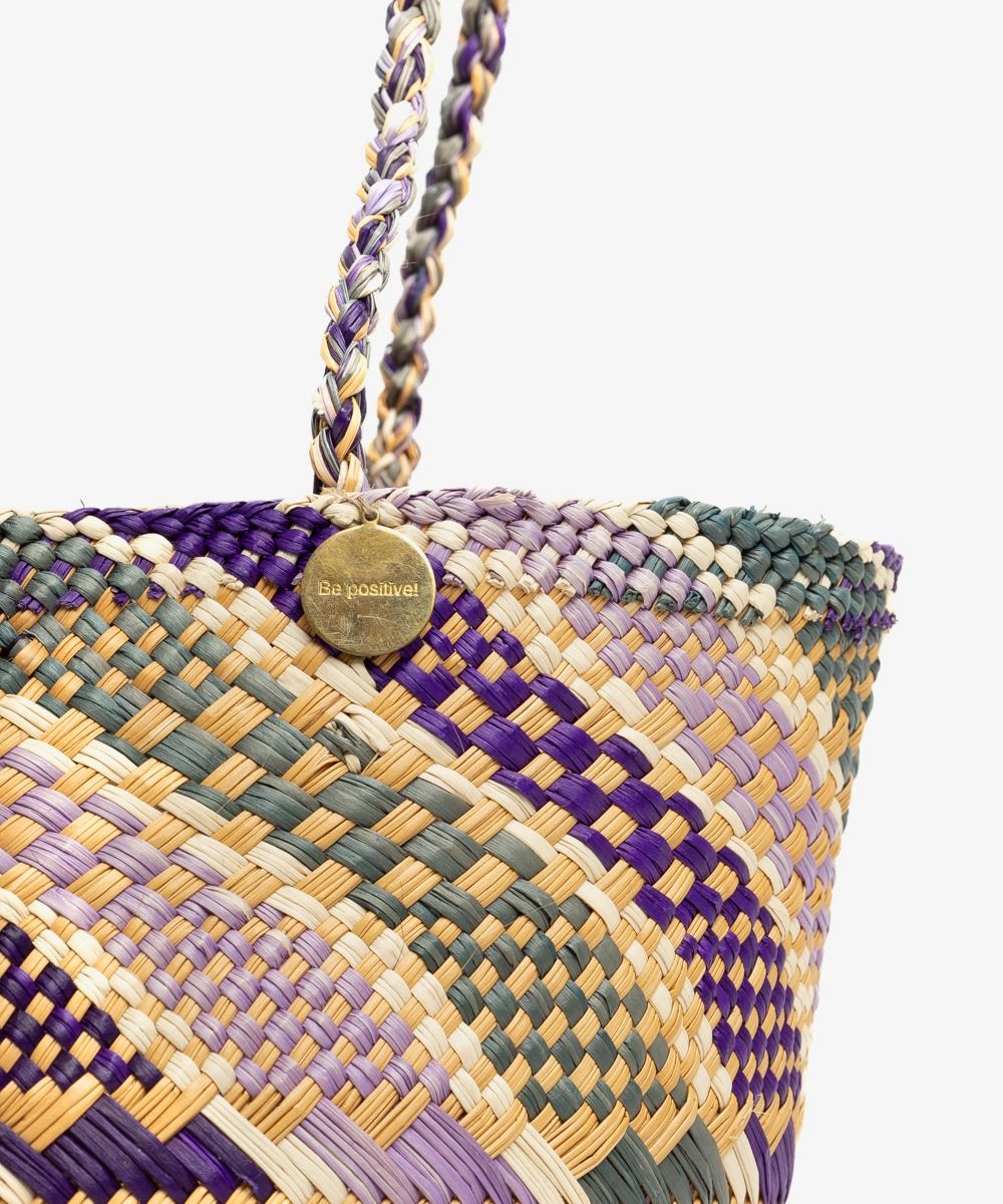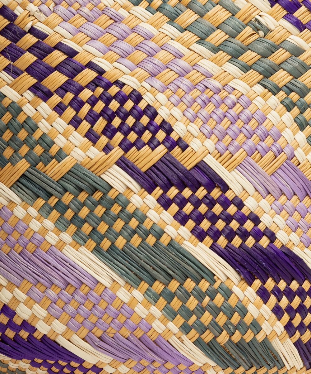 Nuestros complementos están hechos a mano por artesanas utilizando la técnica de tejido en iraca, típica de la tradición colombiana. La iraca, o paja toquilla, es una fibra natural que proviene de la “Carludovica palmata”, de cuyas hojas se obtienen unos finos hilos que son teñidos para darles color. Una vez secos, los artesanos entretejen los hilos con los diferentes colores para crear nuestros cestos.