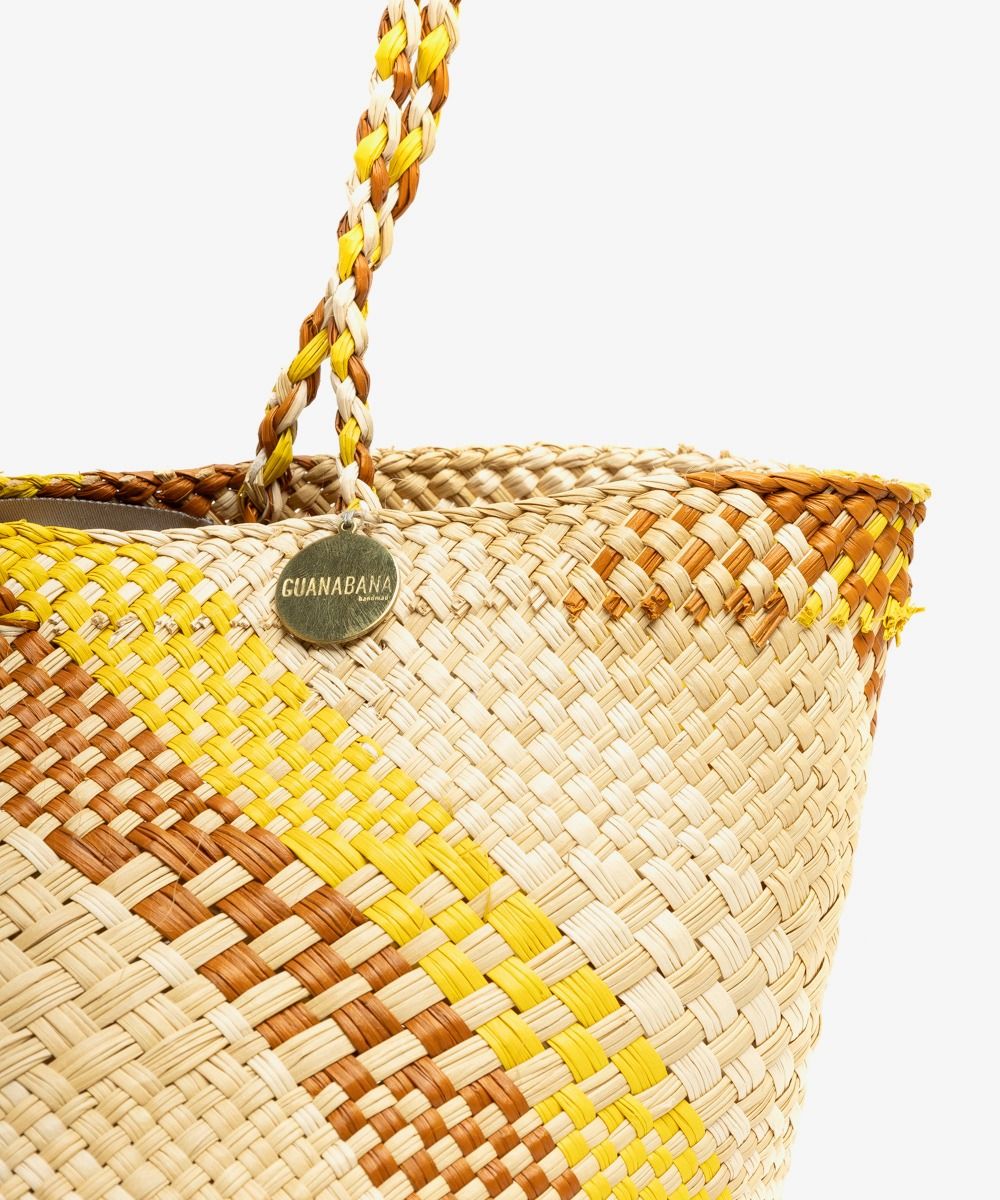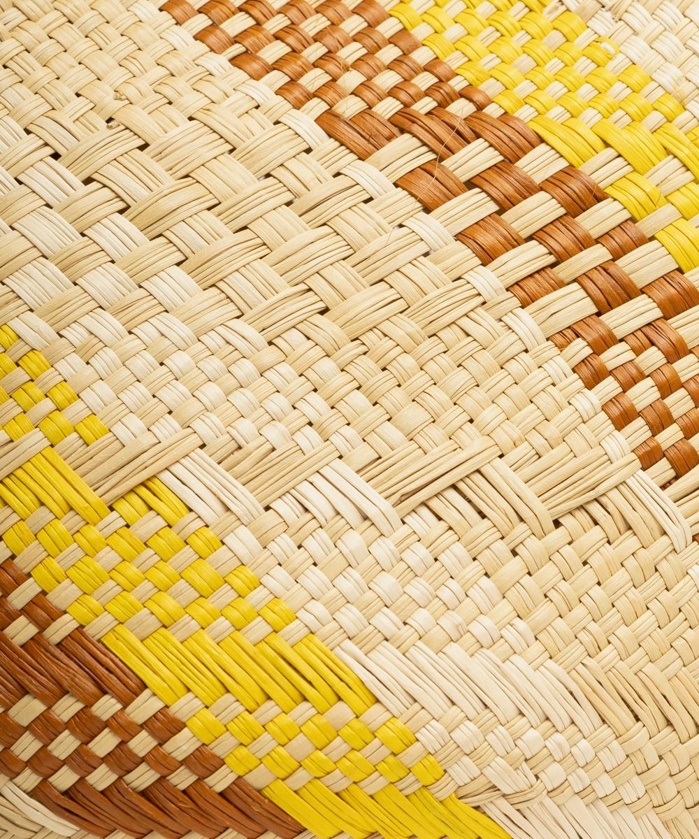 Nuestros complementos están hechos a mano por artesanas utilizando la técnica de tejido en iraca, típica de la tradición colombiana. La iraca, o paja toquilla, es una fibra natural que proviene de la “Carludovica palmata”, de cuyas hojas se obtienen unos finos hilos que son teñidos para darles color. Una vez secos, los artesanos entretejen los hilos con los diferentes colores para crear nuestros cestos.