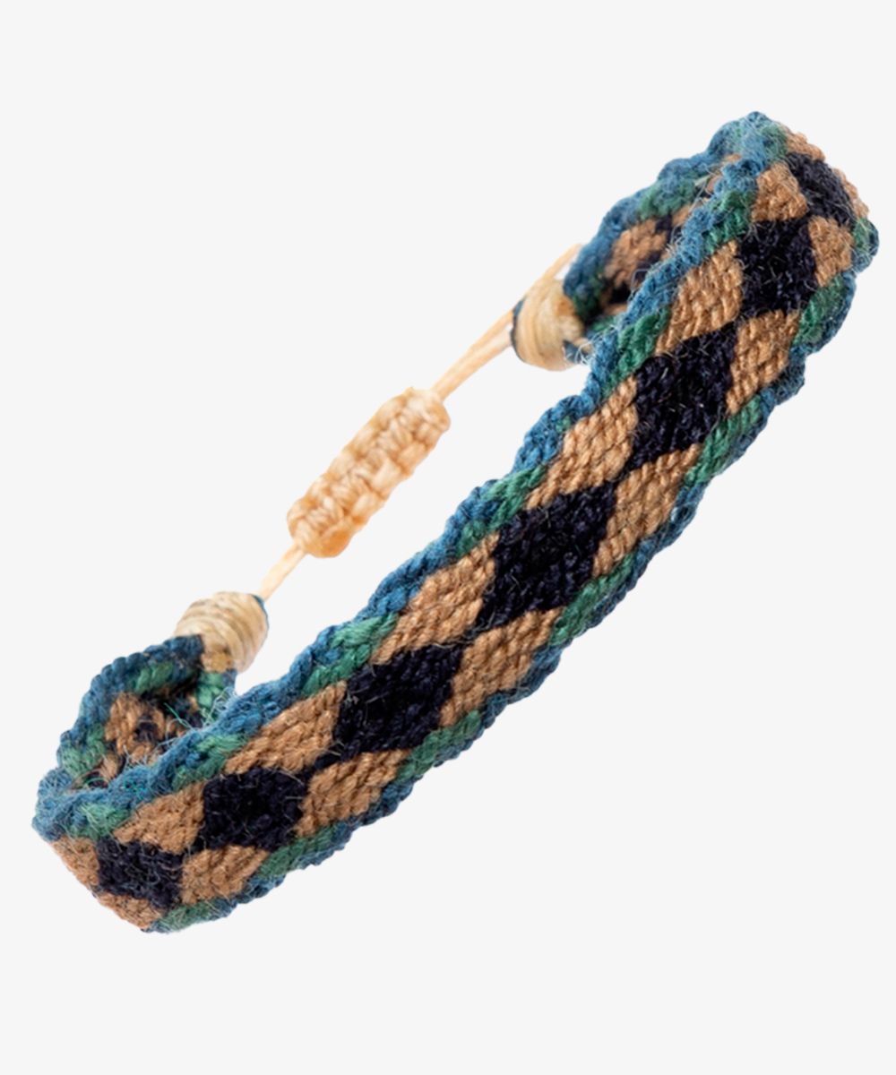 Add a vibrant touch of colour to your look with the CAPTAIN bracelet, an original creation by Guanábana. The colourful geometric patterns are designed in Madrid and our bracelets are entirely hand-woven by Colombian artisans. The opening of the bracelet adjusts to your wrist and is adorned with a medallion on which is inscribed our mantra: Be positive!