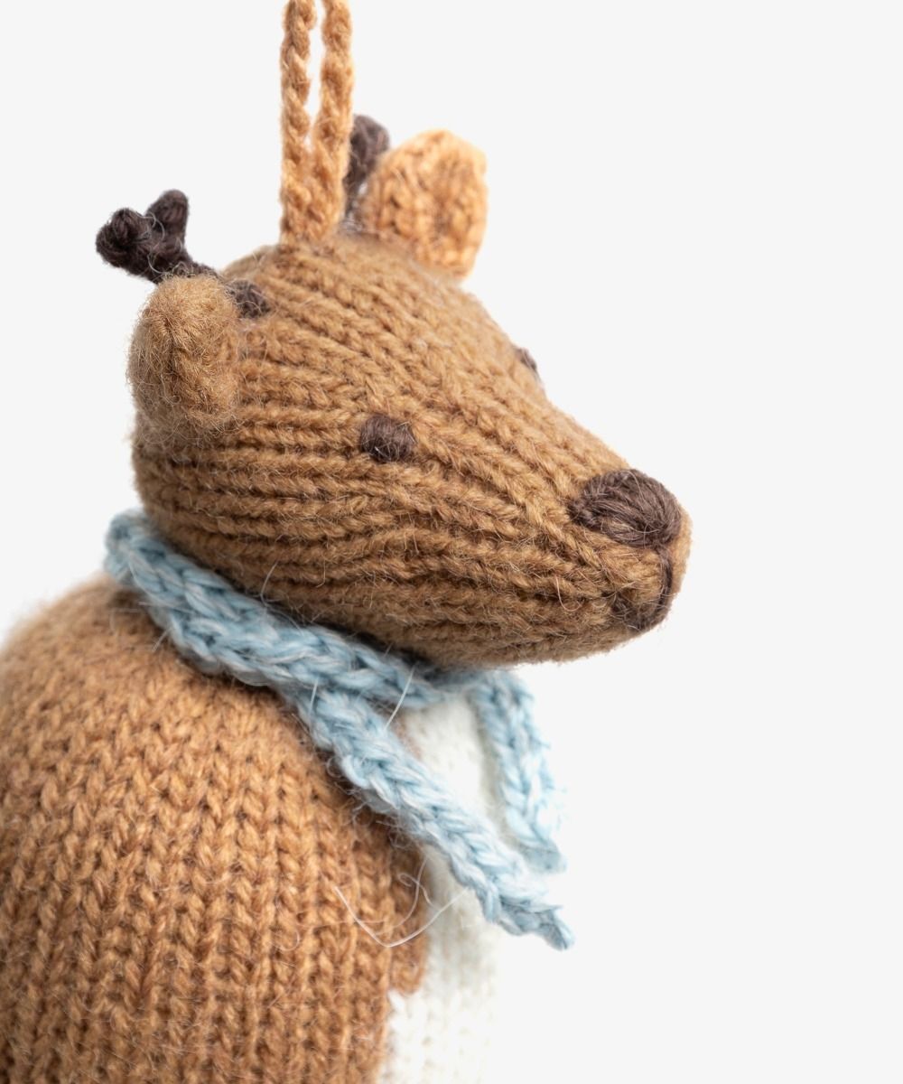 Nuestros adornos para el árbol de Navidad están hechos a mano en Perú por artesanas expertas, utilizando lana de alpaca. Cada muñeco se moldea y entrelaza a mano con gran cuidado, logrando una textura suave, ligera y lujosa que combina belleza y resistencia.