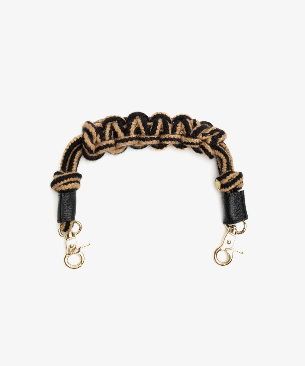 Añade un toque de individualidad y vibrante encanto a tus bolsos con nuestra excepcional colección de asas. Este accesorio atemporal combina a la perfección la rica tradición del macramé con llamativos y coloridos motivos, dando como resultado una estética boho-chic distintiva. Cada asa está meticulosamente elaborada a mano por artesanos expertos mediante técnicas tradicionales en telares manuales, lo que garantiza una calidad y artesanía excepcionales, y cuenta con cierres de langosta adornados con elegantes remates de cuero.