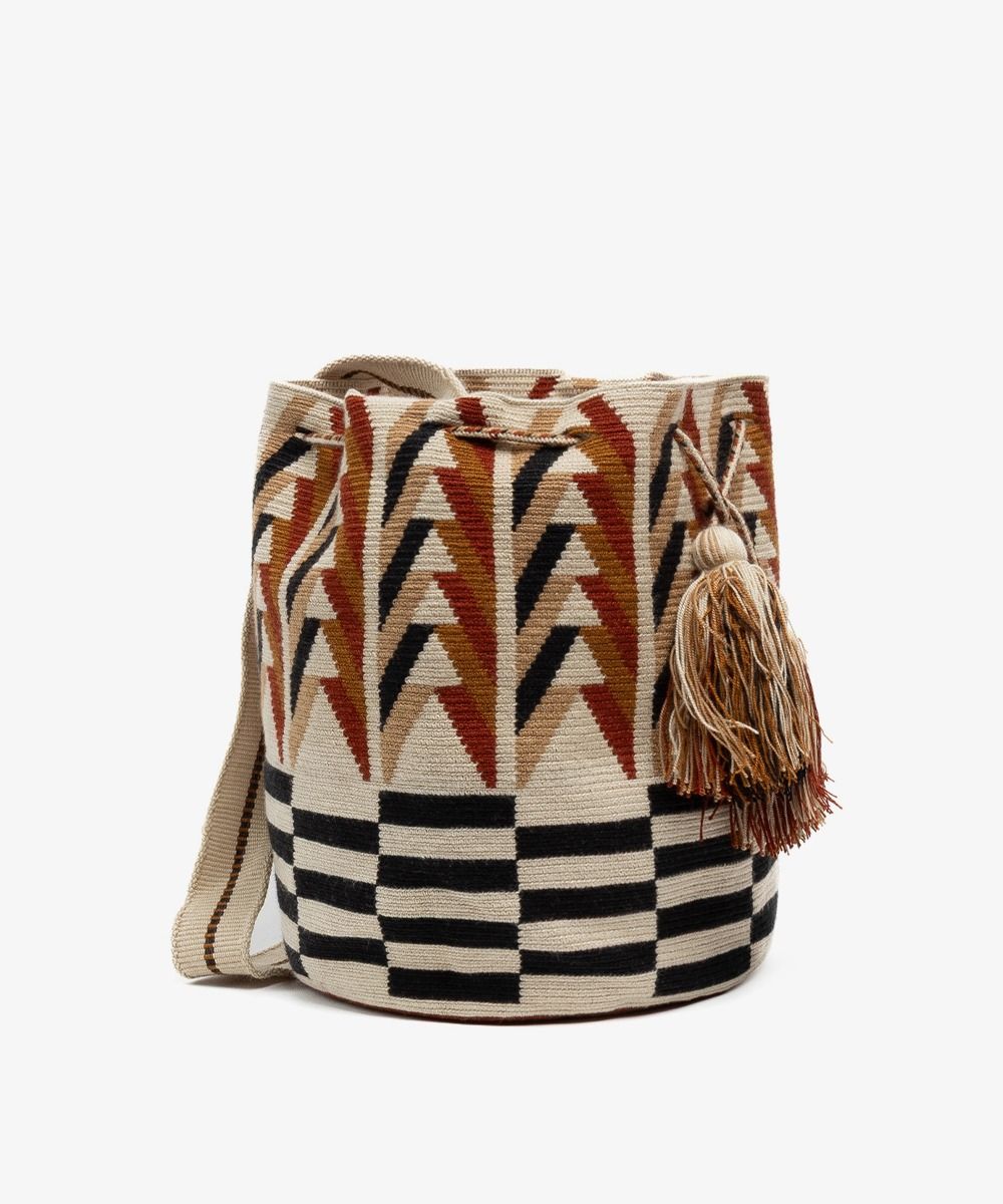 Este bolso es el símbolo del inicio de la relación de amor entre GUANÁBANA y las artesanas Wayuu en Colombia. Con él inicia la apuesta de aplicar un diseño europeo a las artesanías del mundo. El cambio en las figuras y colores han convertido a este bolso en un coleccionable. Su asa larga tejida permite usarlo como bandolera en cualquier ocasión. Revisa su base, no hay dos iguales. No te lo pierdas. Este bolso cierra con dos pompones tejidos y nuestro sello en bronce con el leitmotiv de GUANABANA: BE POSITIVE.