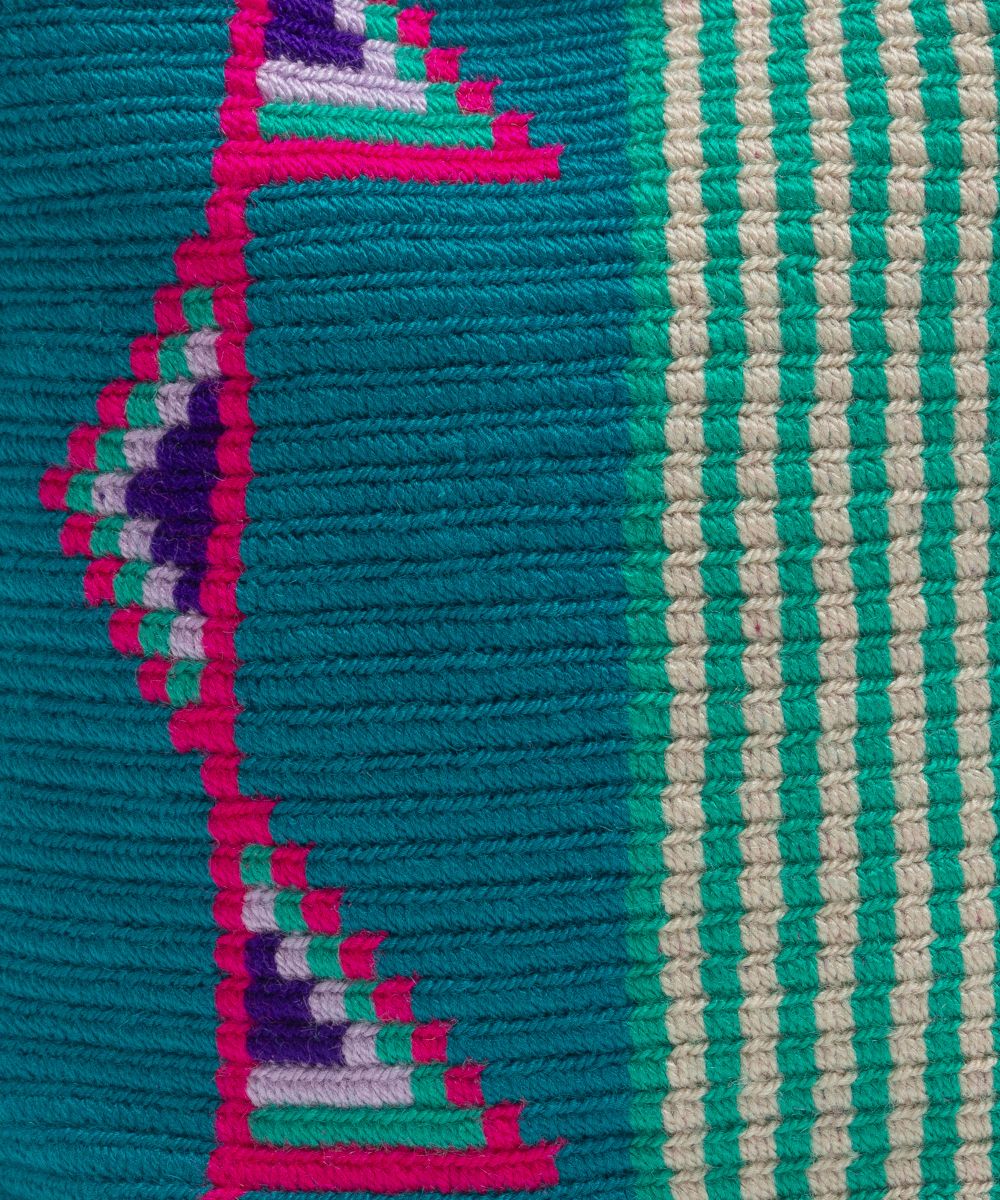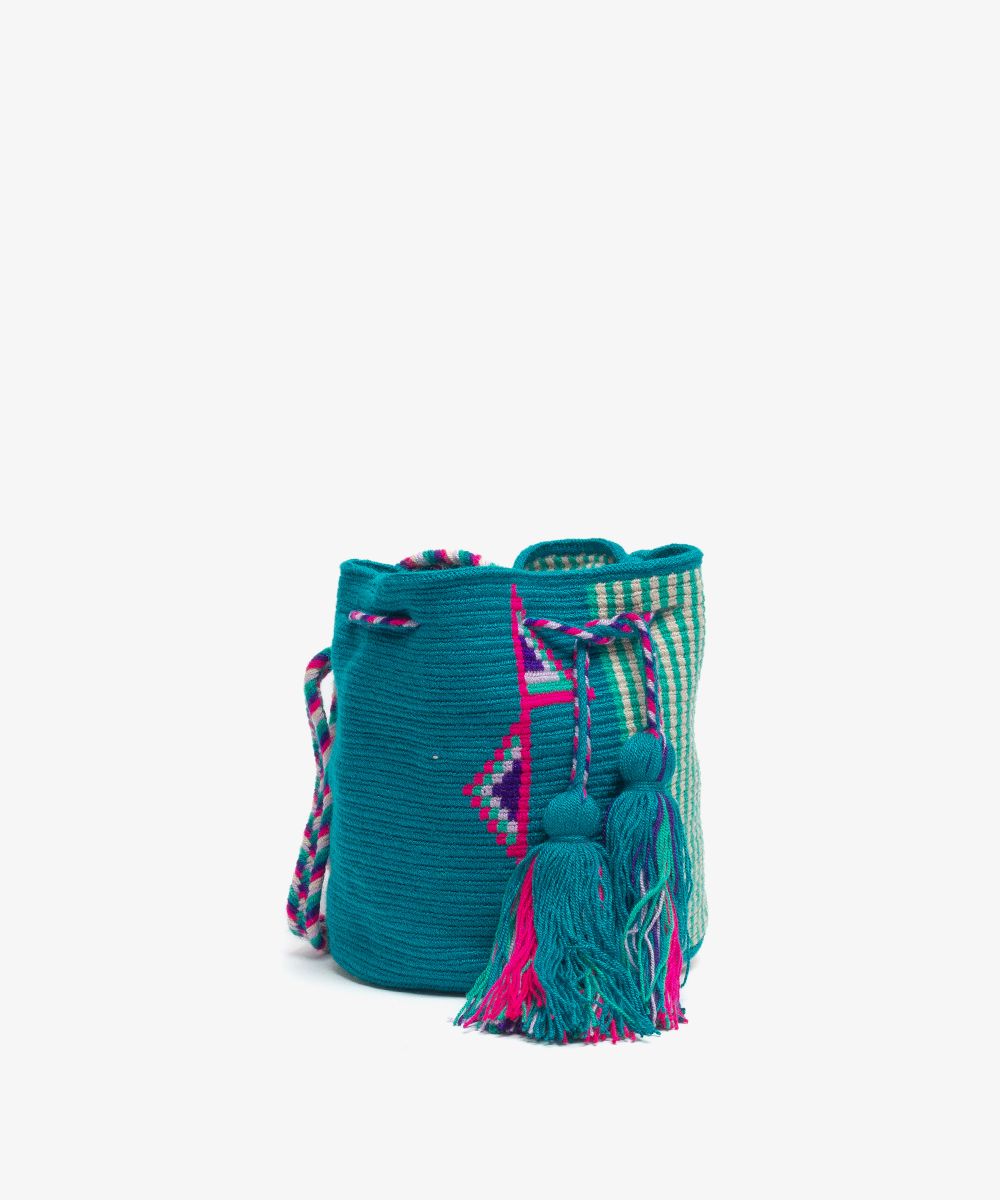 Gracias a las manos de cientos de mujeres Wayuu en Colombia y a los diseñadores de GUANÁBANA en Madrid, nuestro bolso clásico se presenta en una versión más pequeña. Tejido a mano por artesanas en Colombia, los colores y patrones de este bolso, y su asa larga, lo convierten en un imprescindible que puedes usar en cualquiera ocasión. Revisa su base y admira las diferencias que trae cada uno de ellos. Este bolso cierra con dos pompones tejidos y nuestro sello en bronce con el leitmotiv de GUANABANA: BE POSITIVE.