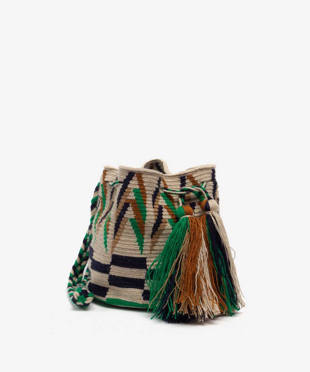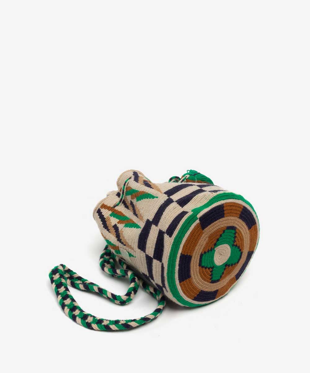 Gracias a las manos de cientos de mujeres Wayuu en Colombia y a los diseñadores de GUANÁBANA en Madrid, nuestro bolso clásico se presenta en una versión más pequeña. Tejido a mano por artesanas en Colombia, los colores y patrones de este bolso, y su asa larga, lo convierten en un imprescindible que puedes usar en cualquiera ocasión. Revisa su base y admira las diferencias que trae cada uno de ellos. Este bolso cierra con dos pompones tejidos y nuestro sello en bronce con el leitmotiv de GUANABANA: BE POSITIVE.