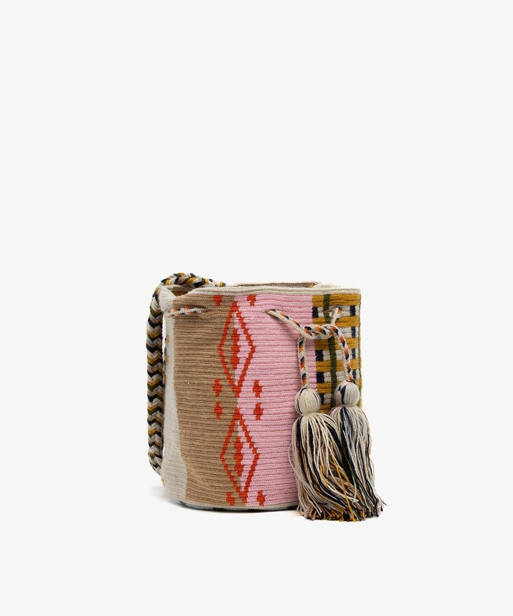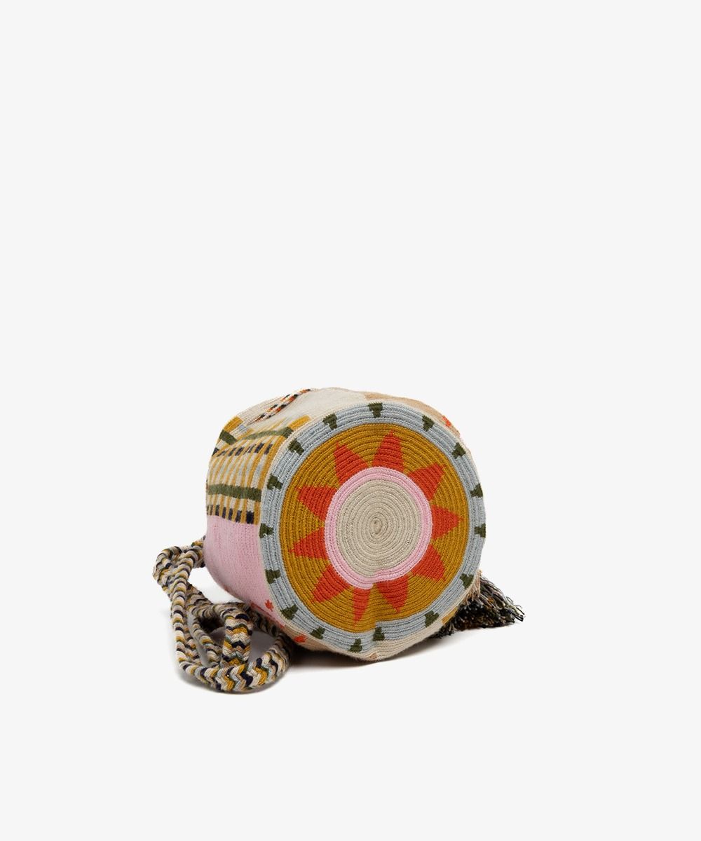 Gracias a las manos de cientos de mujeres Wayuu en Colombia y a los diseñadores de GUANÁBANA en Madrid, nuestro bolso clásico se presenta en una versión más pequeña. Tejido a mano por artesanas en Colombia, los colores y patrones de este bolso, y su asa larga, lo convierten en un imprescindible que puedes usar en cualquiera ocasión. Revisa su base y admira las diferencias que trae cada uno de ellos. Este bolso cierra con dos pompones tejidos y nuestro sello en bronce con el leitmotiv de GUANABANA: BE POSITIVE.