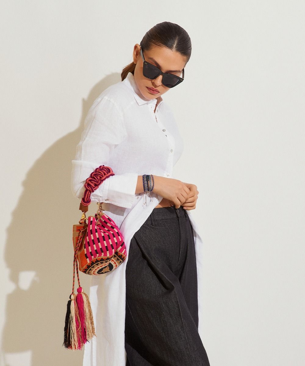 El bolso cruzado M de Guanábana Handmade con asa corta de macramé es una joya artesanal que combina estilo y autenticidad. Este accesorio único está diseñado con gran atención al detalle y elaborado cuidadosamente por artesanos expertos. El bolso, confeccionado con materiales de alta calidad, presenta un intrincado patrón de macramé en su asa corta. El macramé, una técnica ancestral de nudos decorativos, añade un toque bohemio y artístico al diseño. Cada nudo ha sido creado con esmero, reflejando la destreza y la pasión del artesano que lo elaboró. El tamaño mediano del bolso cruzado M lo hace ideal para llevar tus objetos esenciales de manera cómoda y elegante. Su diseño cruzado te permite llevarlo colgado al hombro o cruzado en el cuerpo, brindándote libertad de movimiento mientras mantienes tus pertenencias seguras y a tu alcance. Además de su belleza estética, el bolso de Guanábana Handmade es un tributo a la artesanía y al comercio justo. La marca se enorgullece de apoyar a las comunidades locales, promoviendo el trabajo ético y sostenible. Con el bolso cruzado M de Guanábana Handmade con asa corta de macramé, llevarás contigo un pedazo de historia, tradición y amor por el arte. Ya sea que lo lleves en tus aventuras diarias o en ocasiones especiales, este bolso será el complemento perfecto para realzar tu outfit y expresar tu individualidad. Disfruta de la belleza y la exclusividad de Guanábana Handmade, y lleva contigo una obra maestra que cuenta una historia de habilidad artesanal y pasión.