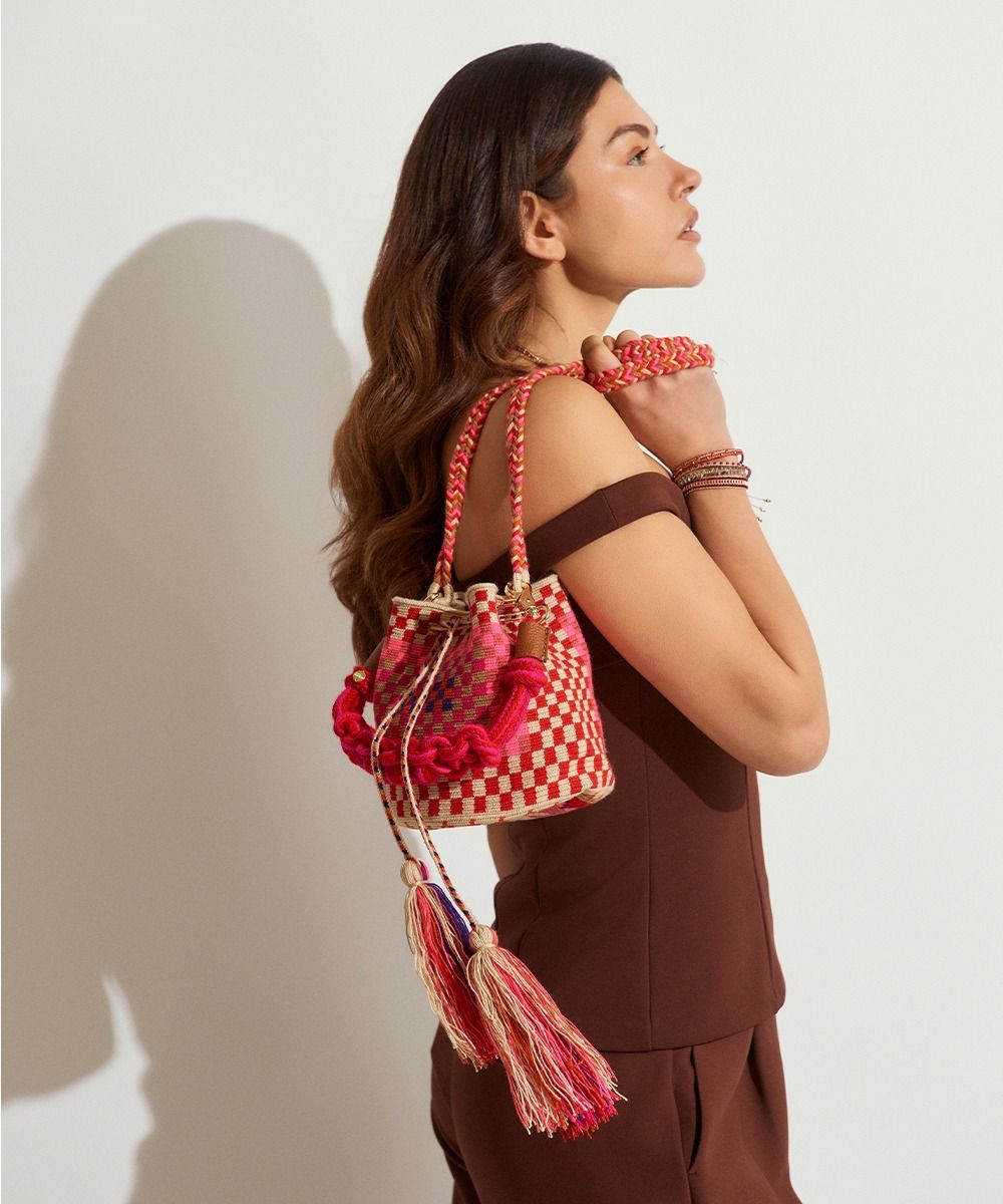 Con el bolso cruzado M de Guanábana Handmade con asa corta de macramé, llevarás contigo un pedazo de historia, tradición y amor por el arte.