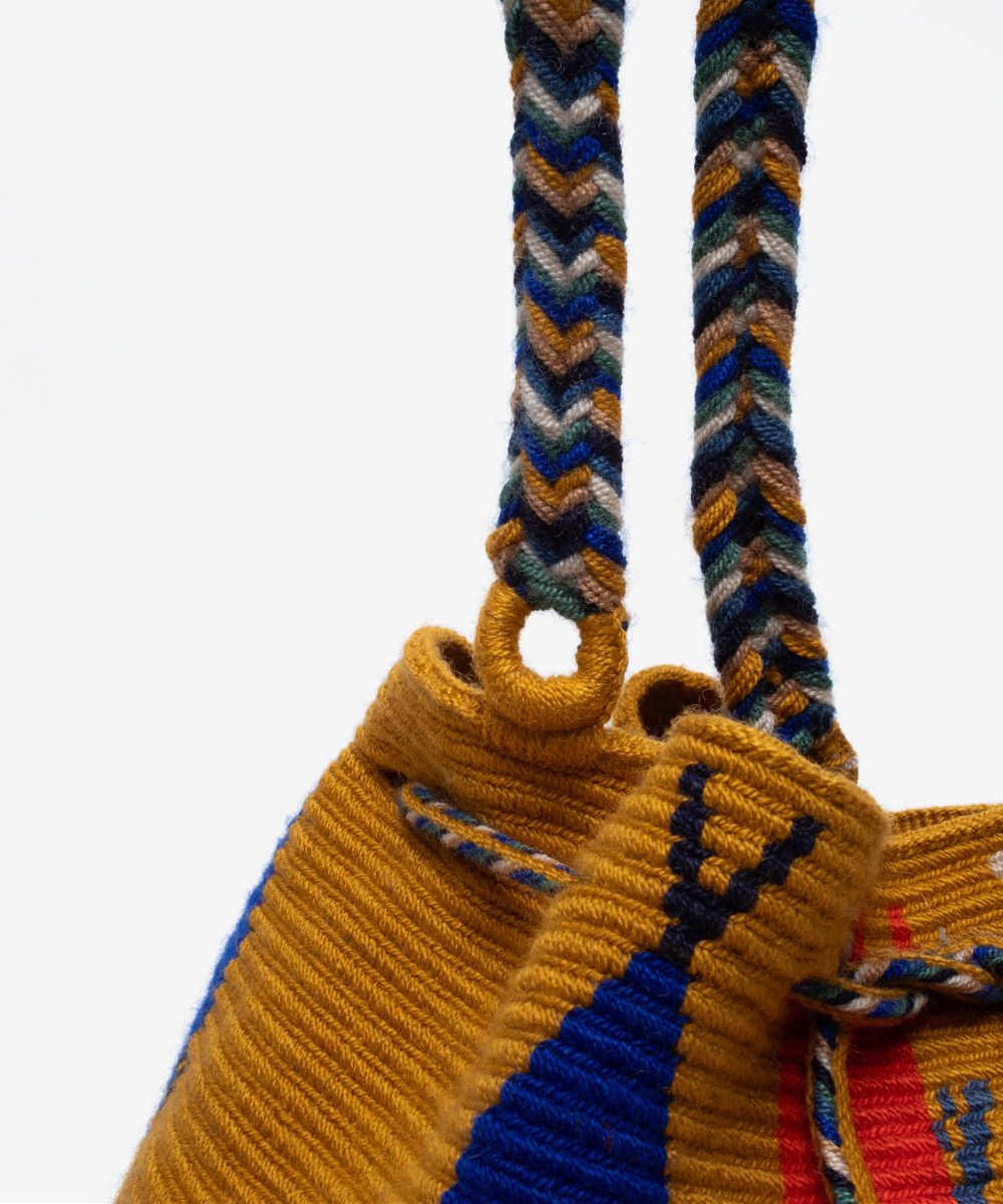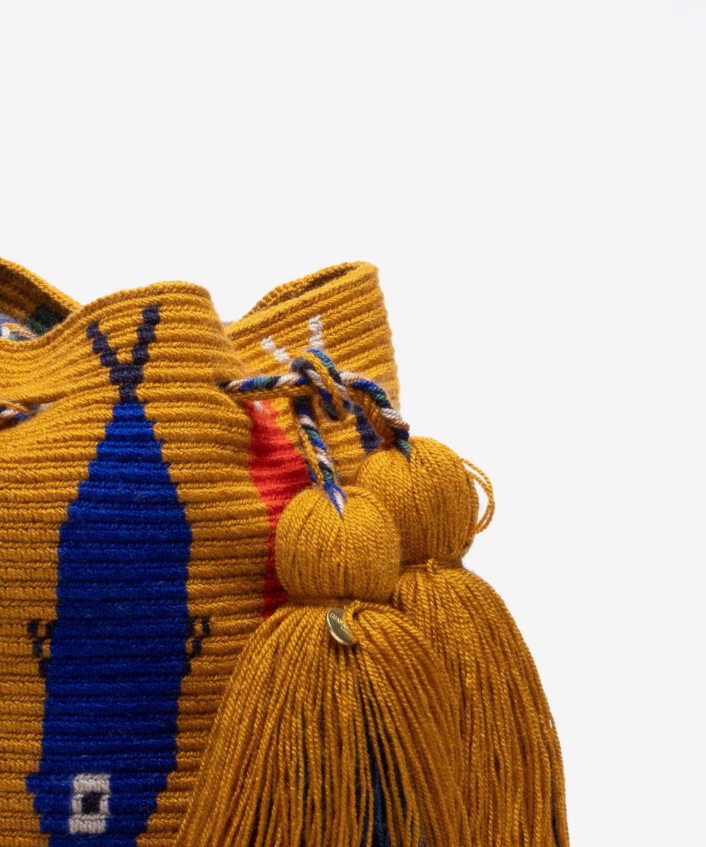 Gracias a las manos de cientos de mujeres Wayuu en Colombia y a los diseñadores de GUANÁBANA en Madrid, nuestro bolso clásico se presenta en una versión más pequeña. Tejido a mano por artesanas en Colombia, los colores y patrones de este bolso, y su asa larga, lo convierten en un imprescindible que puedes usar en cualquiera ocasión. Revisa su base y admira las diferencias que trae cada uno de ellos. Este bolso cierra con dos pompones tejidos y nuestro sello en bronce con el leitmotiv de GUANABANA: BE POSITIVE.