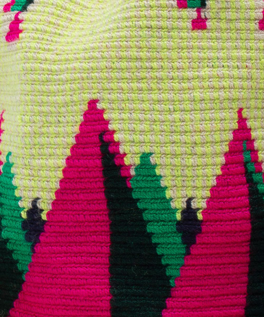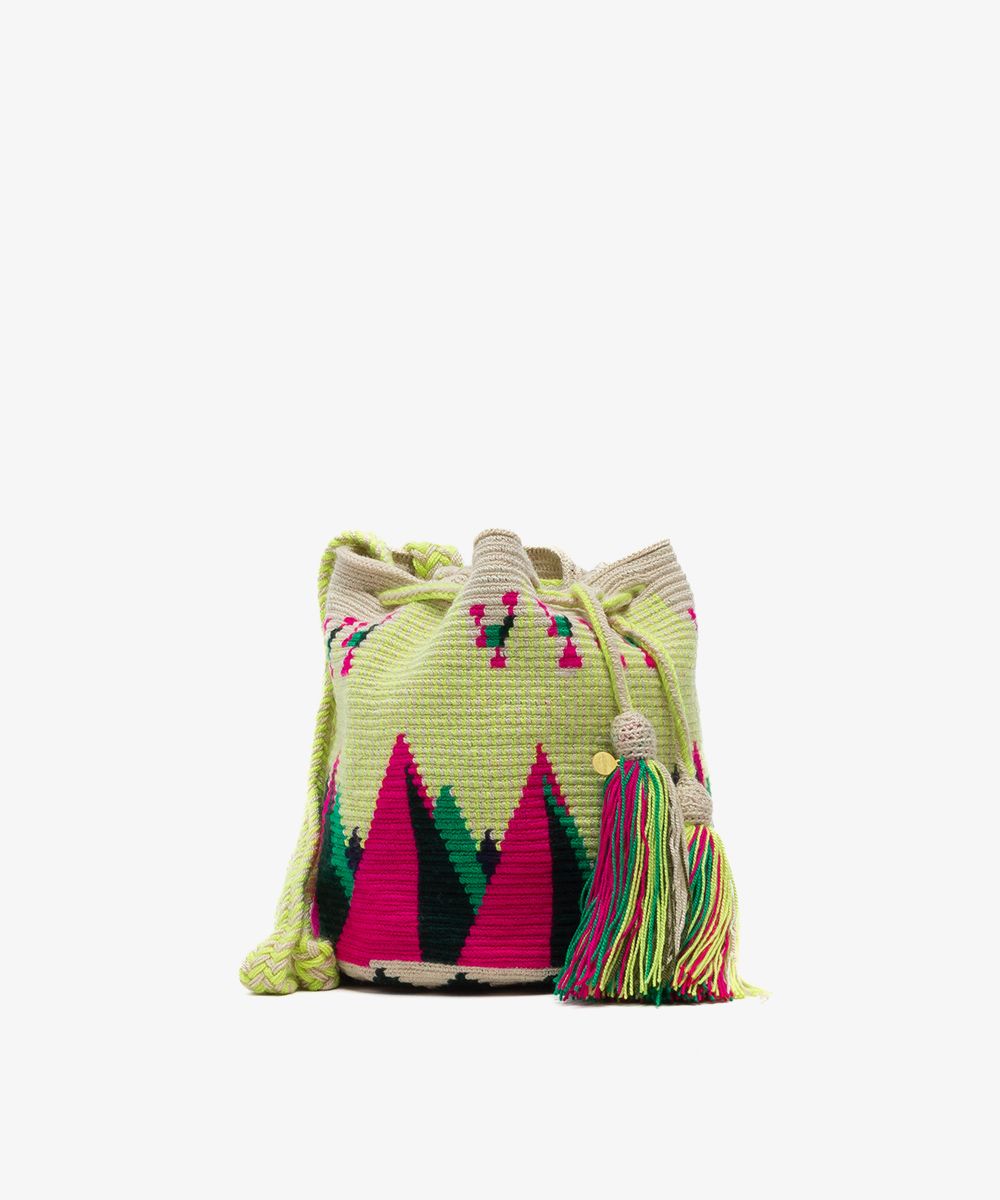 Gracias a las manos de cientos de mujeres Wayuu en Colombia y a los diseñadores de GUANÁBANA en Madrid, nuestro bolso clásico se presenta en una versión más pequeña. Tejido a mano por artesanas en Colombia, los colores y patrones de este bolso, y su asa larga, lo convierten en un imprescindible que puedes usar en cualquiera ocasión. Revisa su base y admira las diferencias que trae cada uno de ellos. Este bolso cierra con dos pompones tejidos y nuestro sello en bronce con el leitmotiv de GUANABANA: BE POSITIVE.